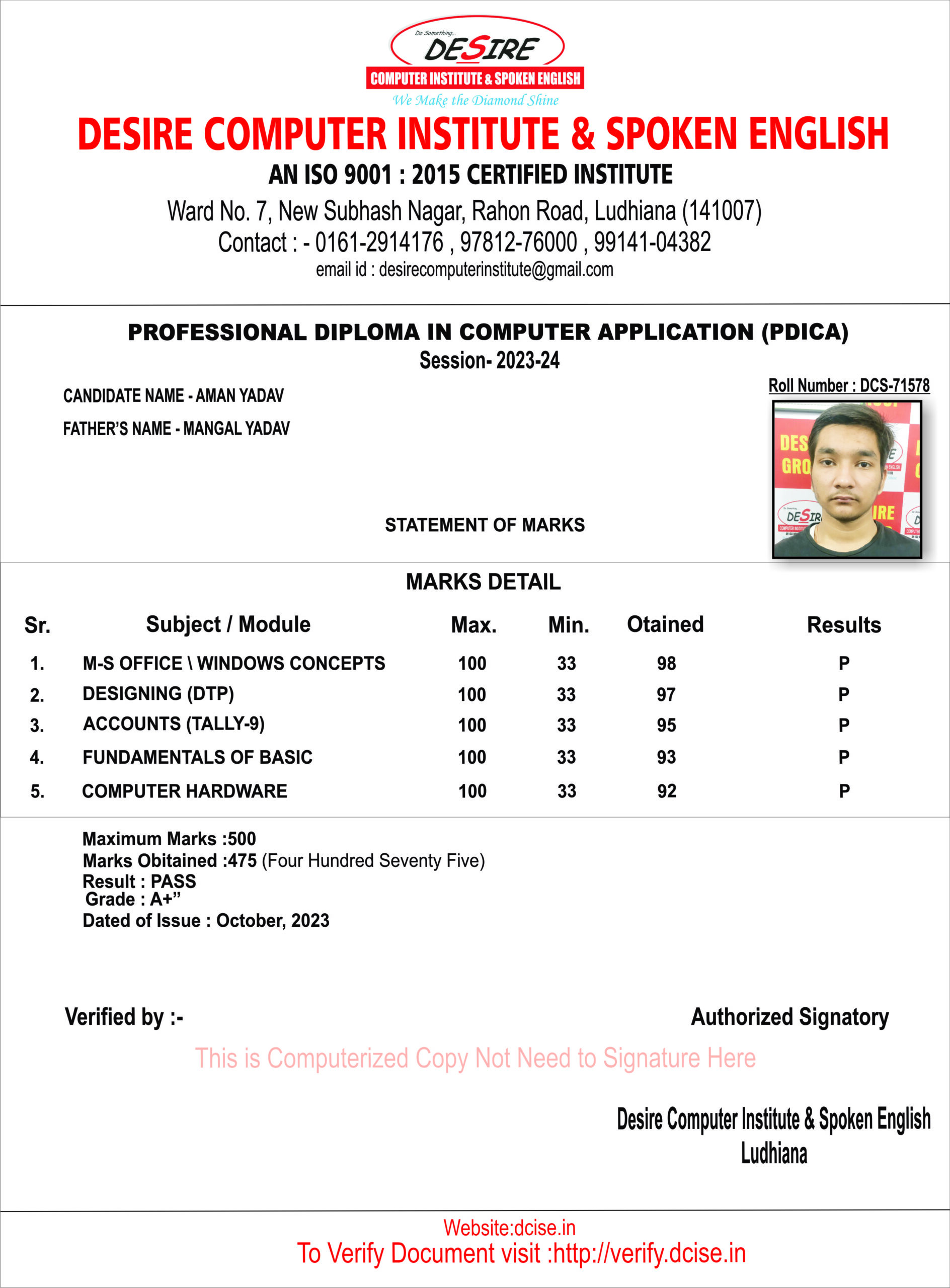 Course Name: | PROFESSIONAL DIPLOMA IN COMPUTER APPLICATION |