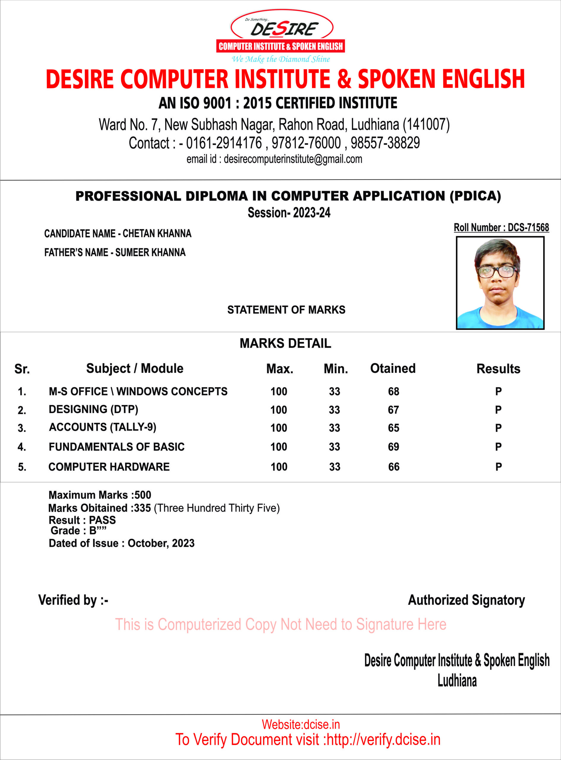 Centre Name: | Desire Computer Institute & Spoken English |