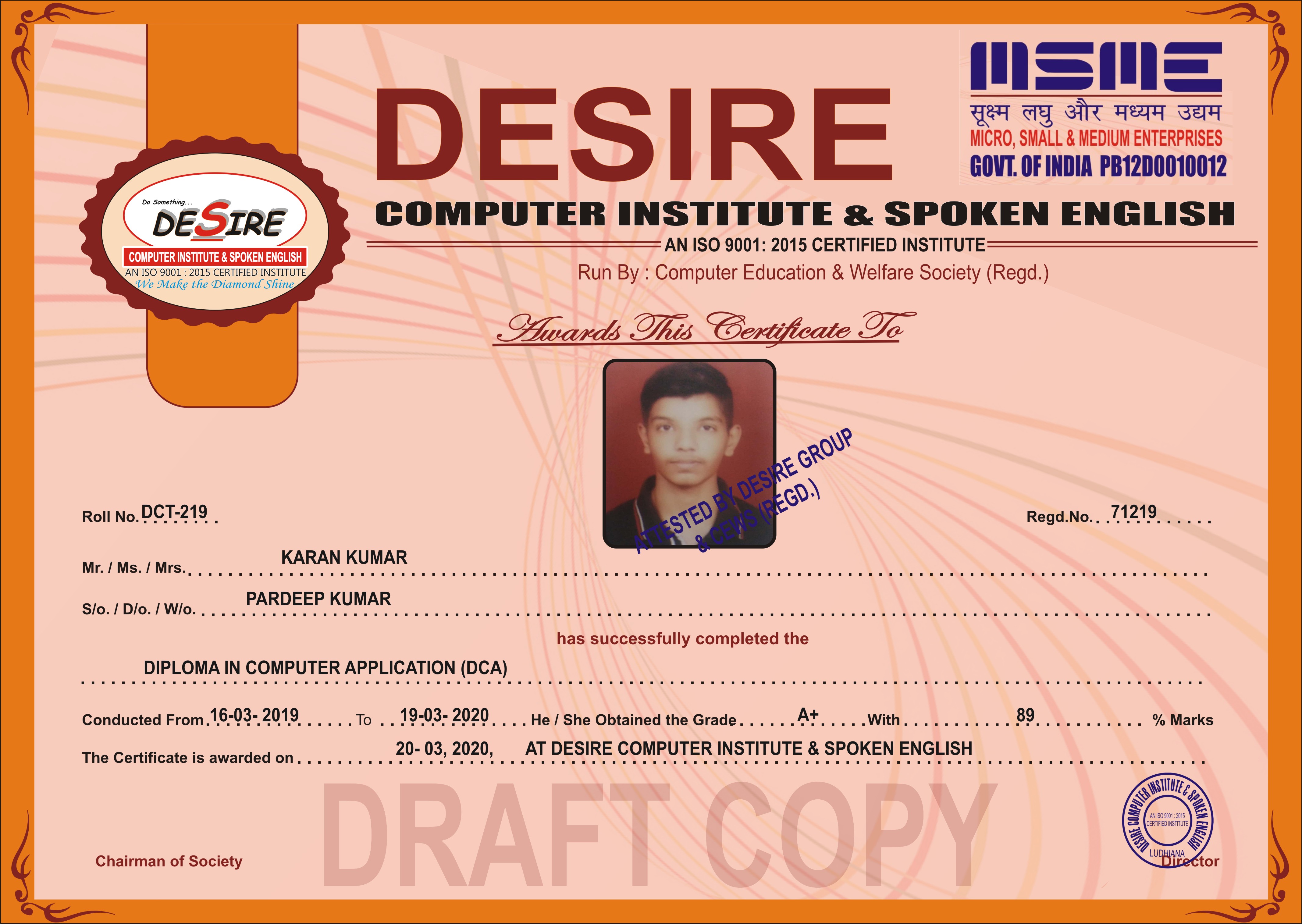 Course Name: | DIPLOMA IN COMPUTER APPLICATION (DCA) |