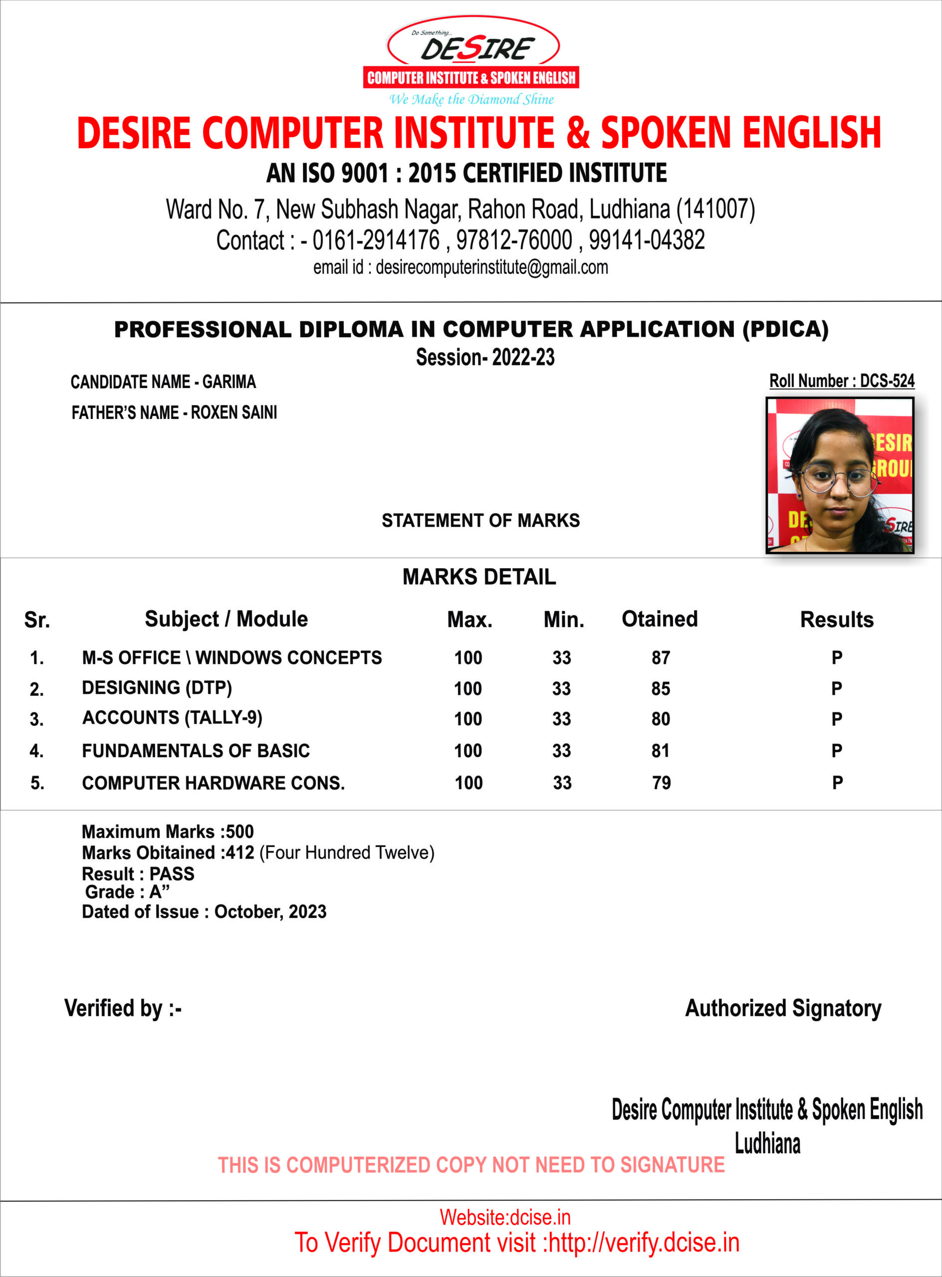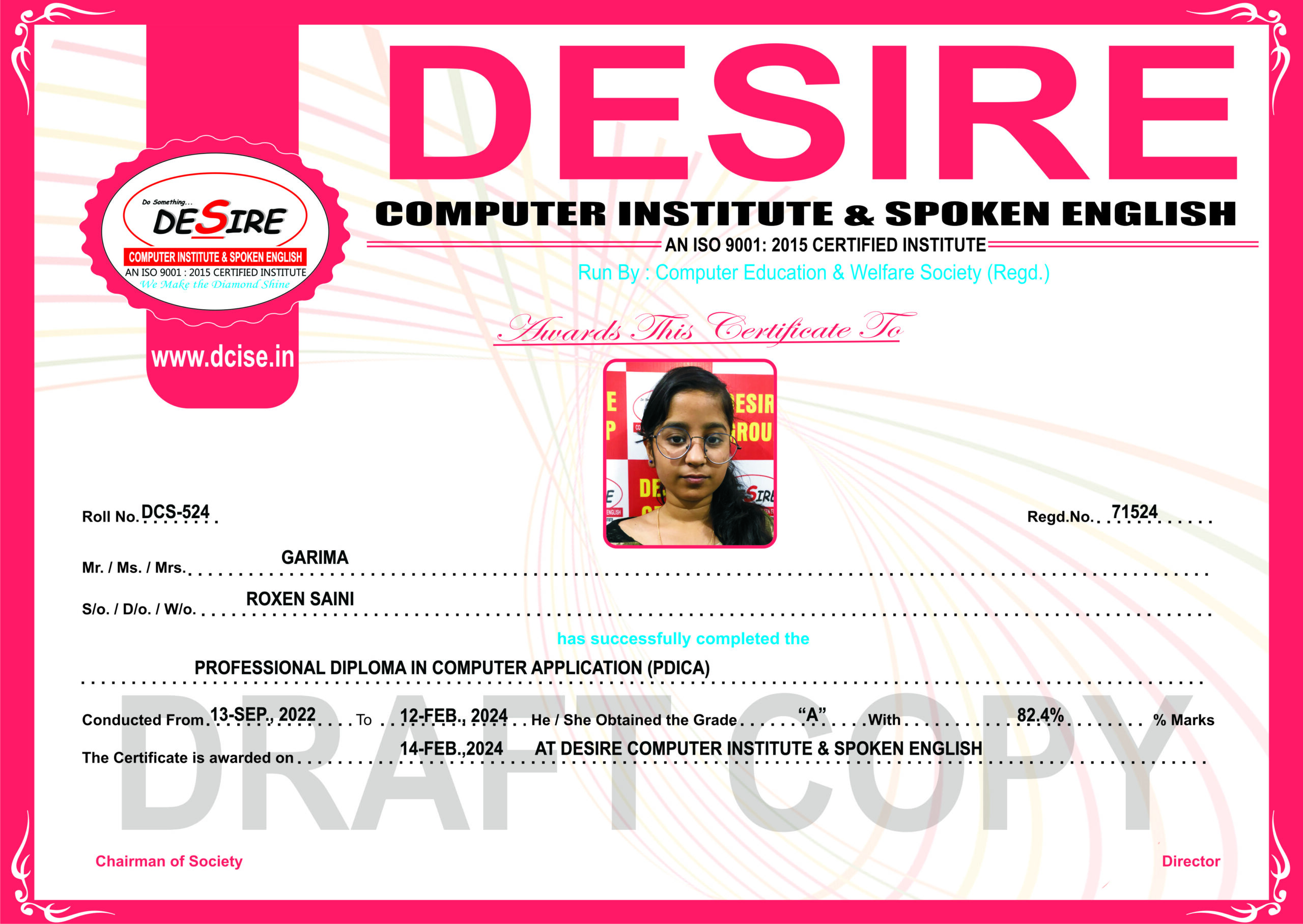 Course Name: | PROFESSIONAL DIPLOMA IN COMPUTER APPLICATION |