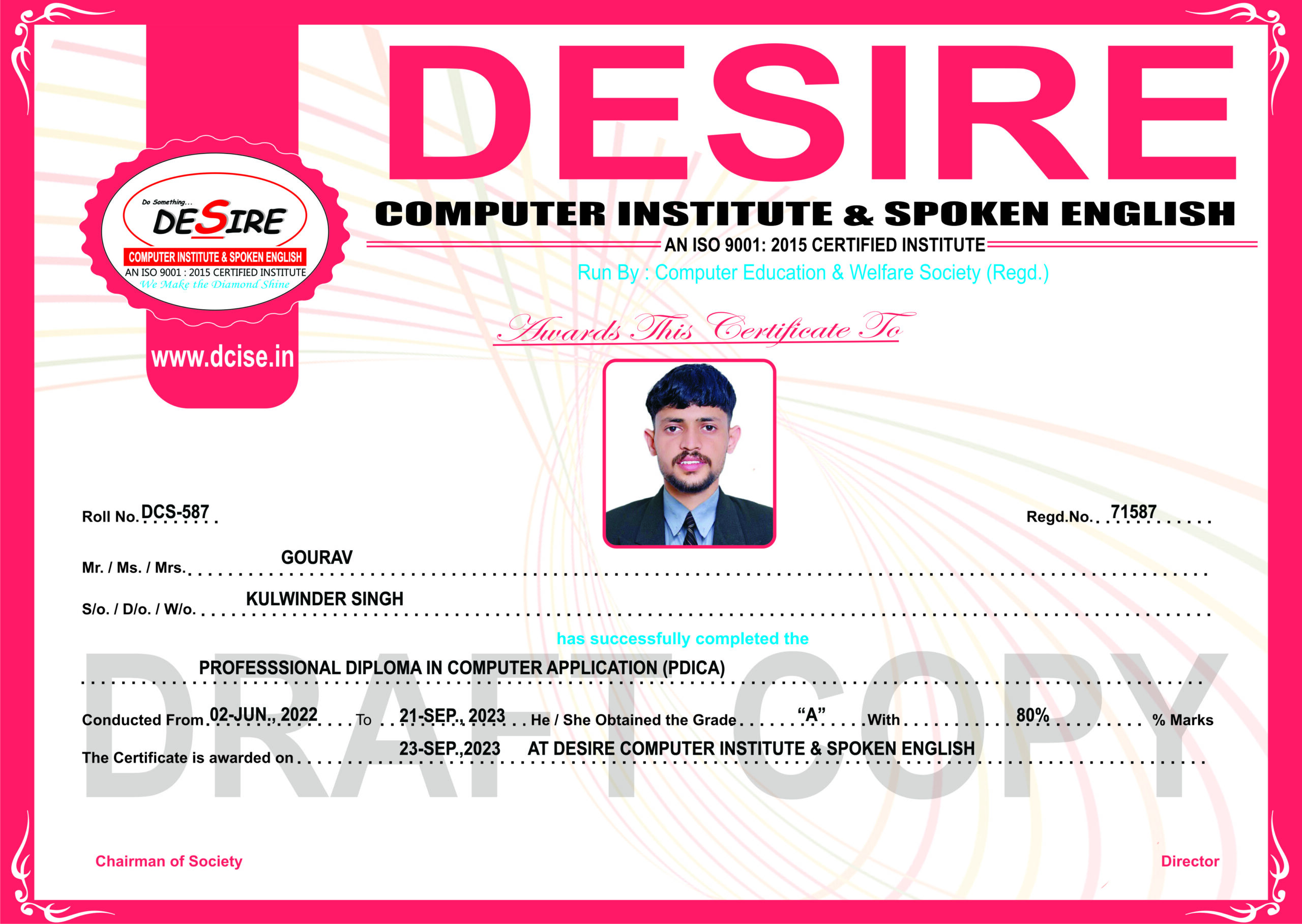 Course Name: | PROFESSIONAL DIPLOMA IN COMPUTER APPLICATION (PDICA) |