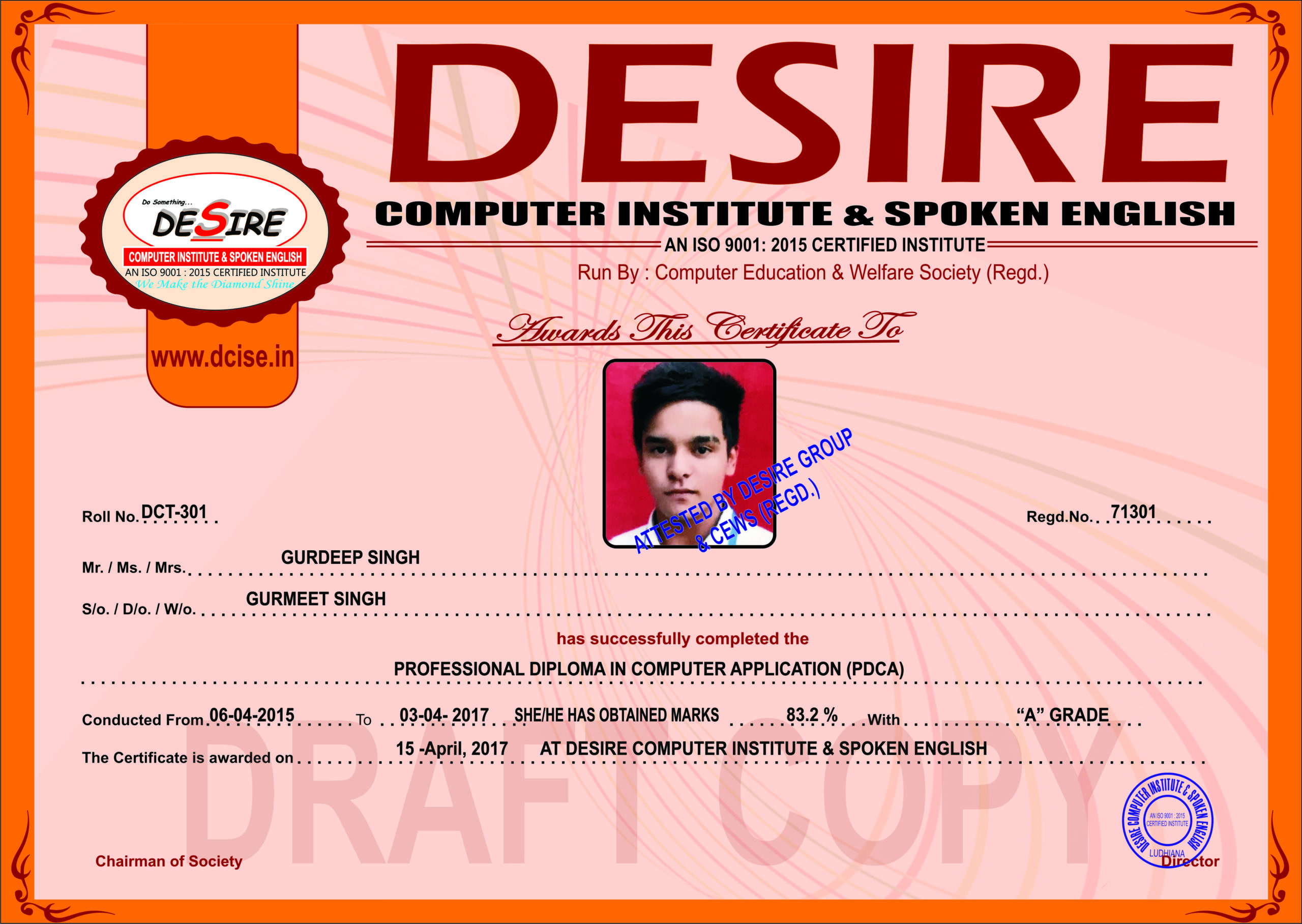 Course Name: | PROFESSIONAL DIPLOMA IN COMPUTER APPLICATION |
