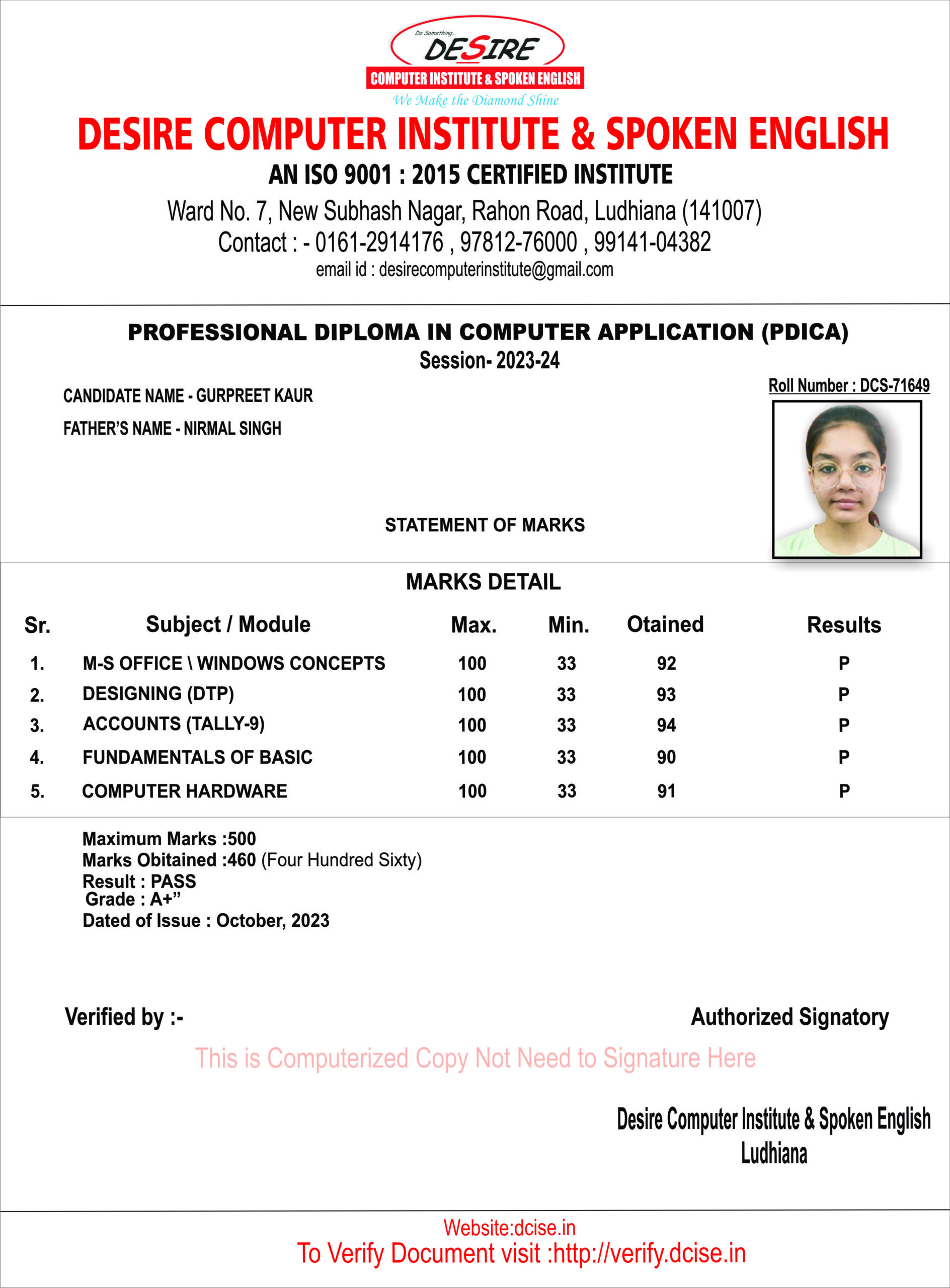 Course Name: | PROFESSIONAL DIPLOMA IN COMPUTER APPLICATION |