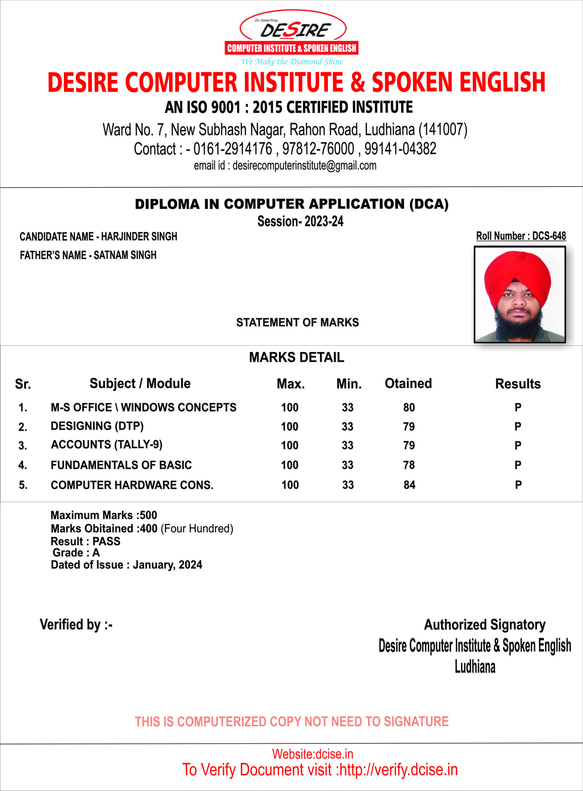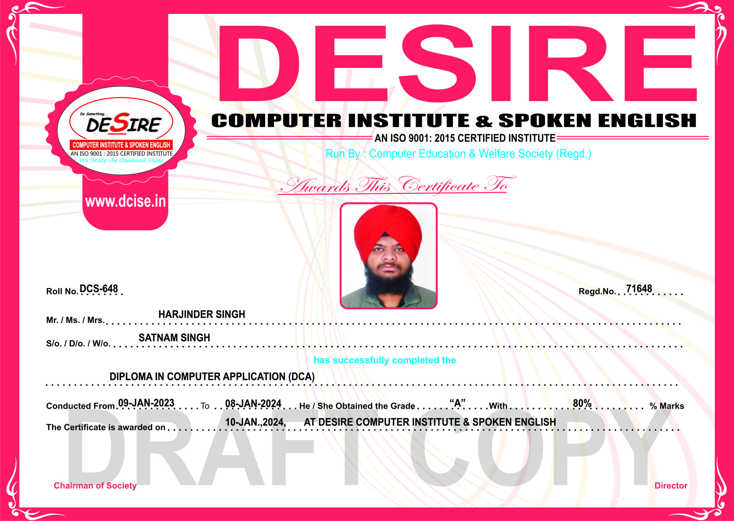 Course Name: | DIPLOMA IN COMPUTER APPLICATION (DCA) |