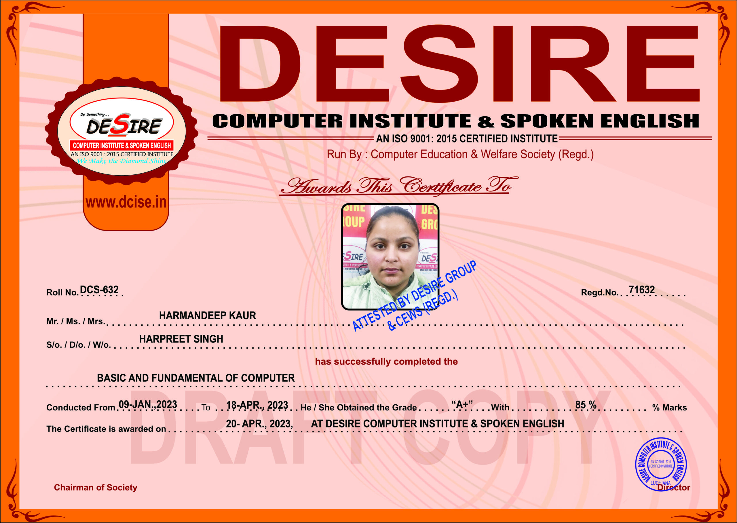 Centre Name: | Desire Computer Institute & Spoken English |