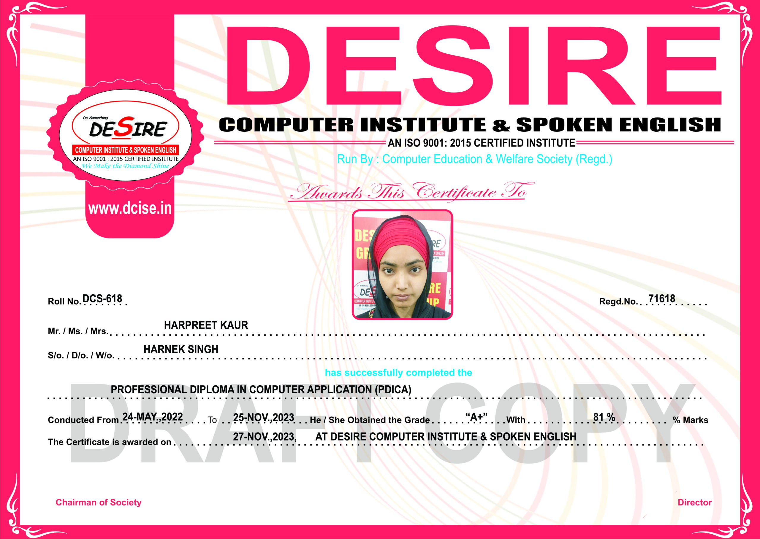 Course Name: | PROFESSIONAL DIPLOMA IN COMPUTER APPLICATION |