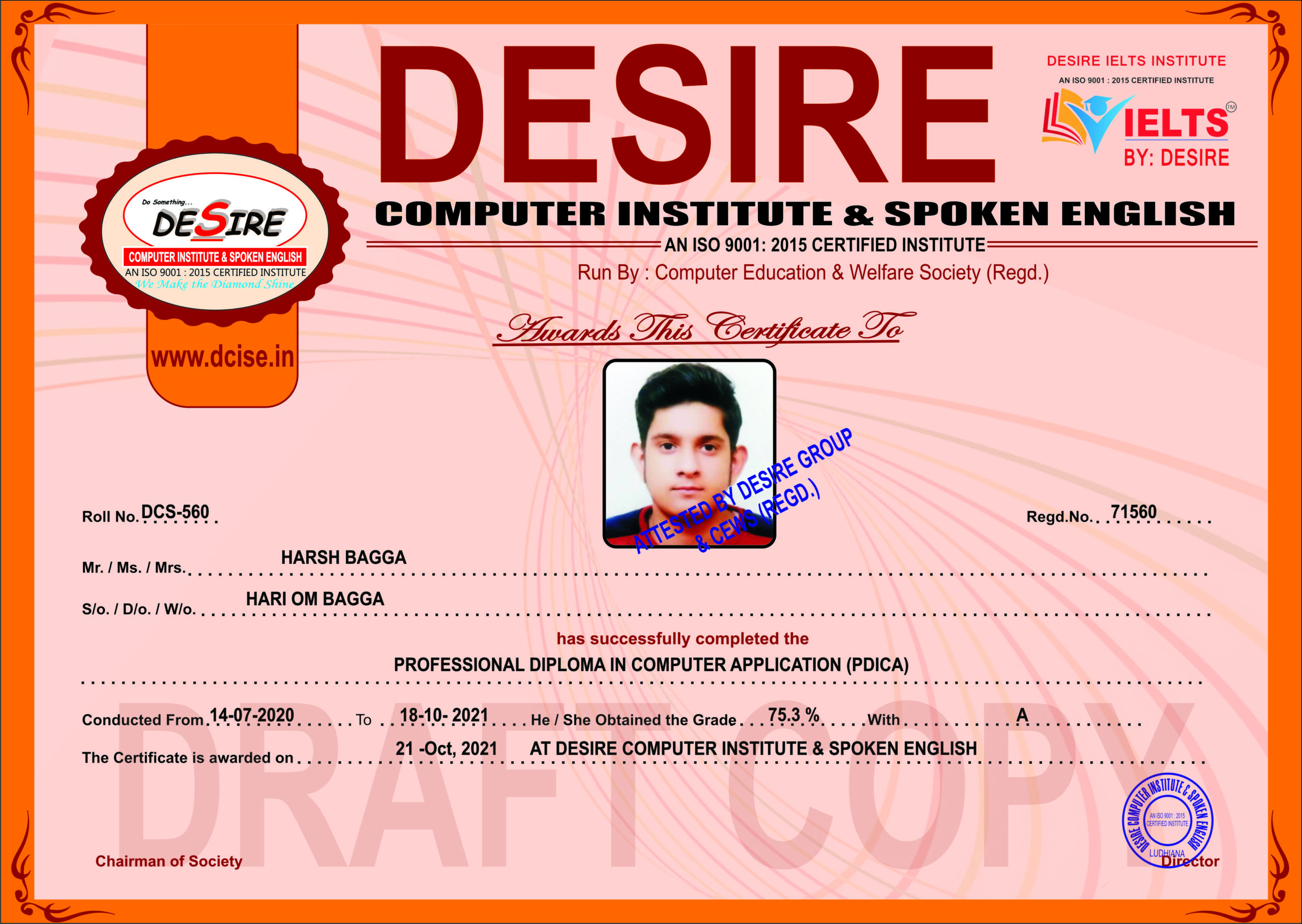 Course Name: | PROFESSIONAL DIPLOMA IN COMPUTER APPLICATION |
