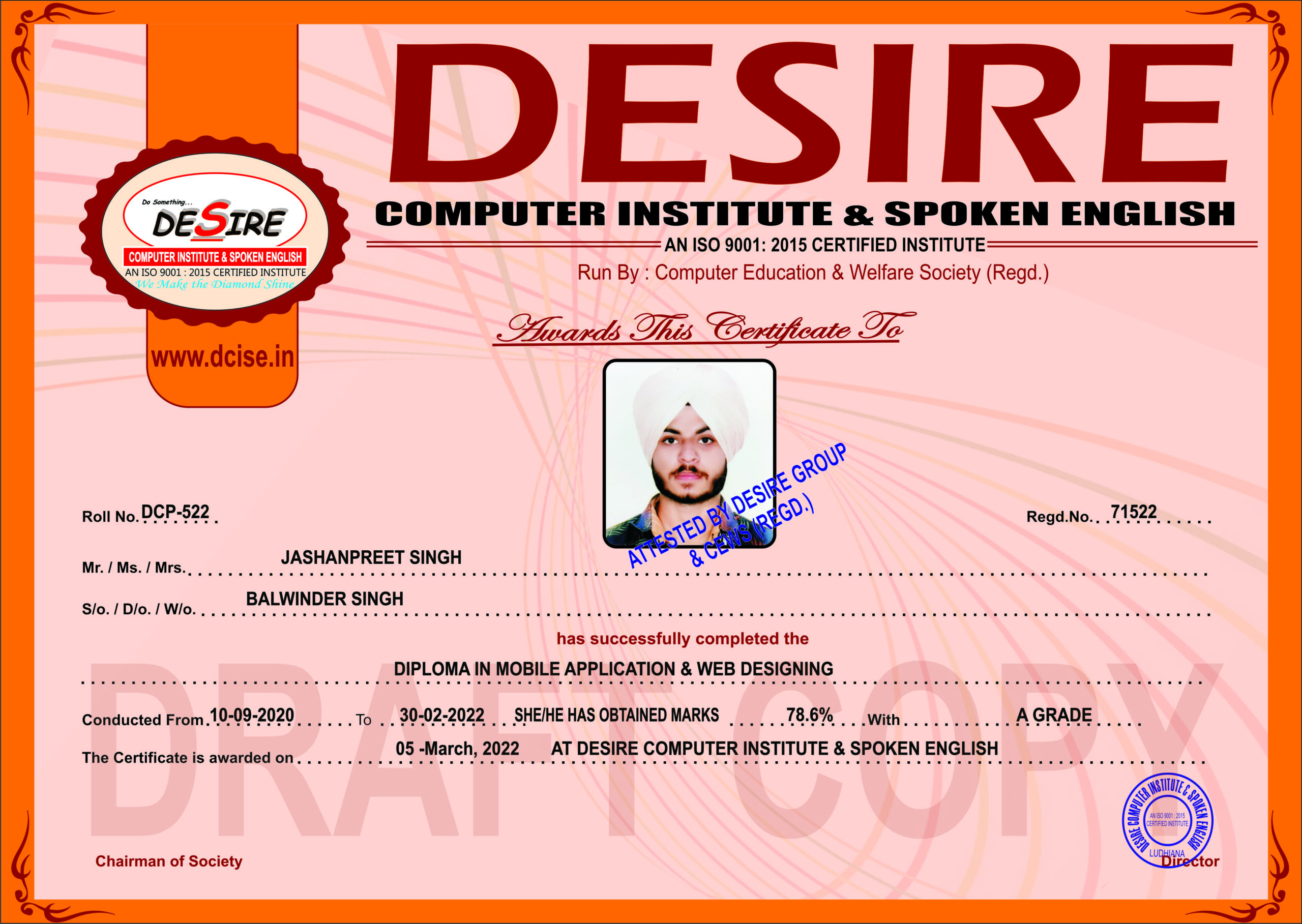 Course Name: | DIPLOMA IN MOBILE APPLICATION AND WEB DESIGNING |