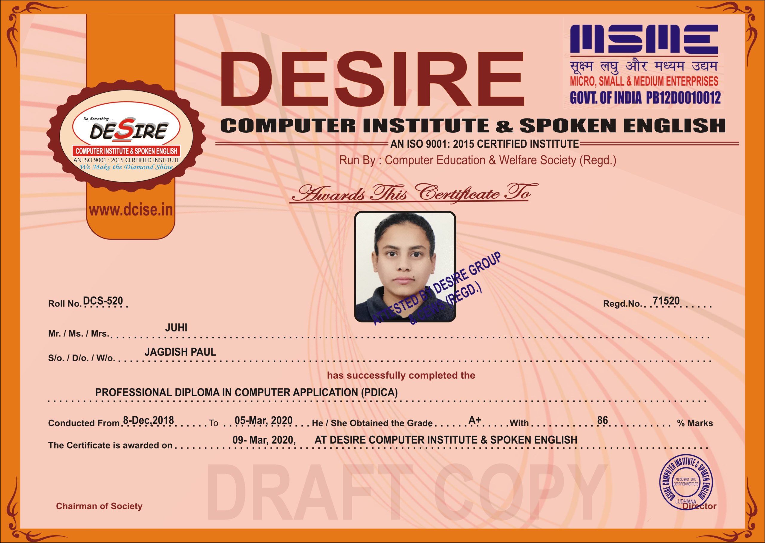 Course Name: | PROFESSIONAL DIPLOMA IN COMPUTER APPLICATION |