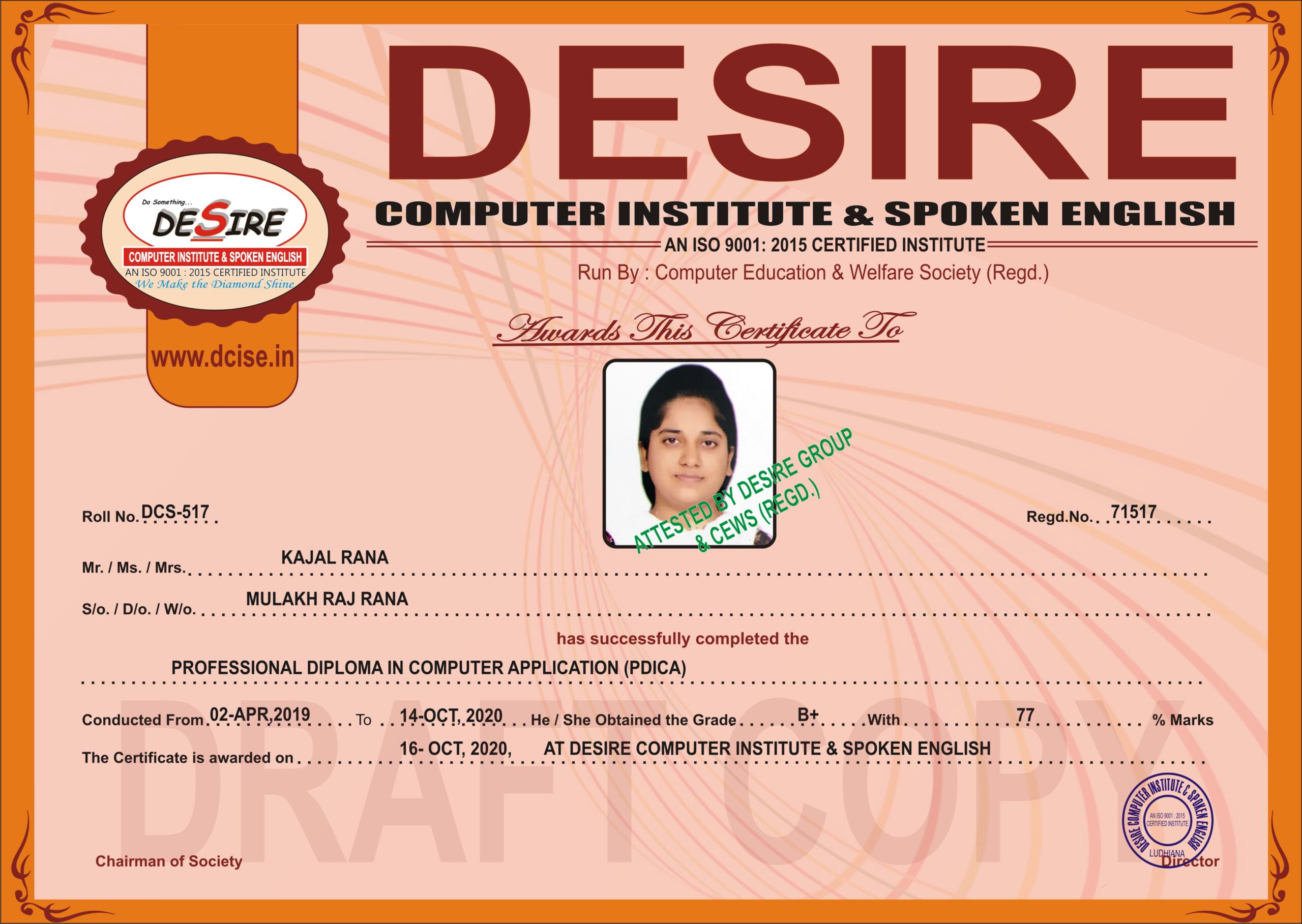 Course Name: | PROFESSIONAL DIPLOMA IN COMPUTER APPLICATION |