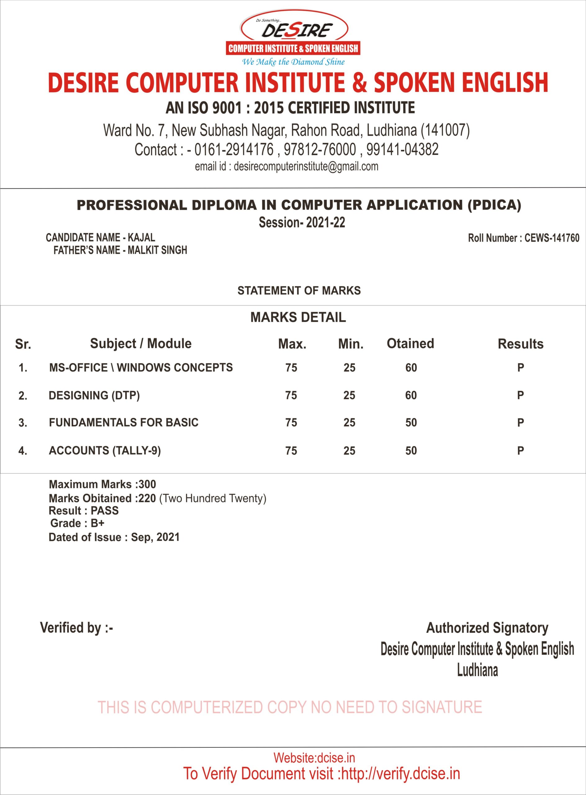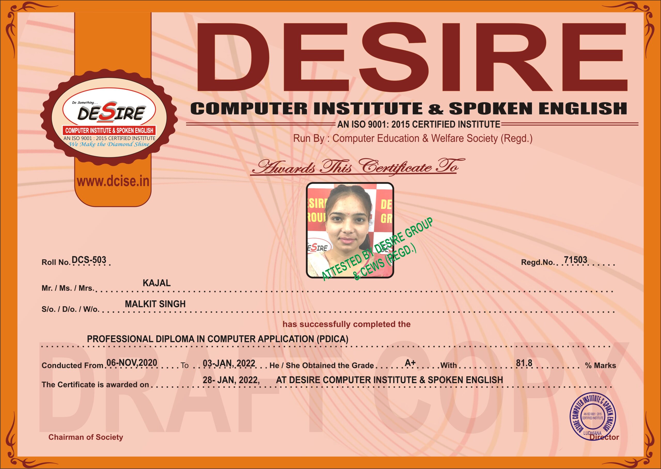 Course Name: | PROFESSIONAL DIPLOMA IN COMPUTER APPLICATION |