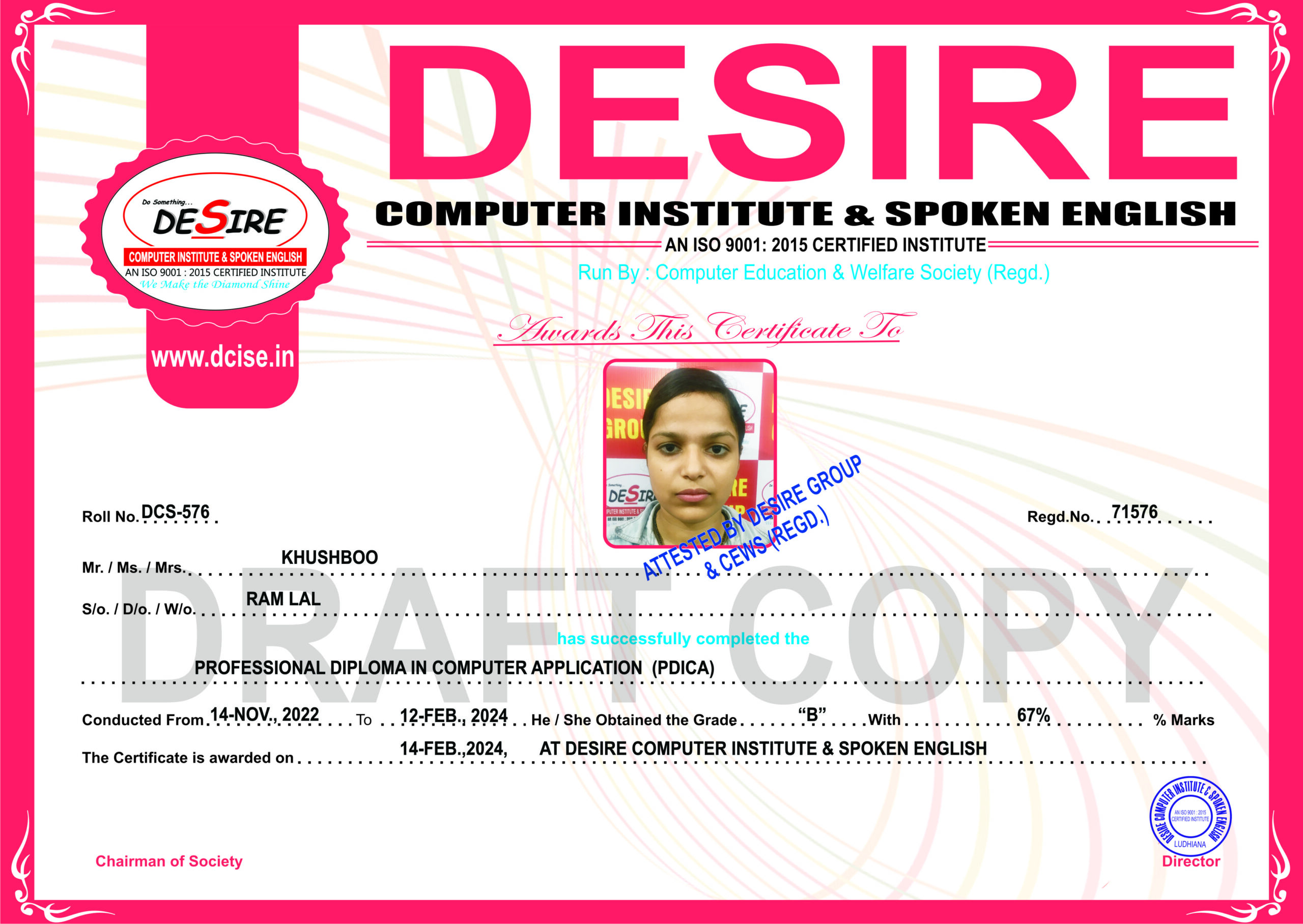 Course Name: | PROFESSIONAL DIPLOMA IN COMPUTER APPLICATION |