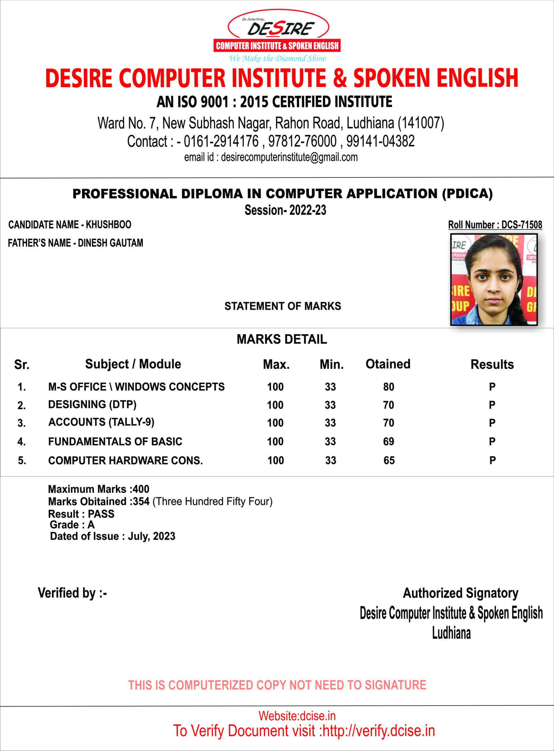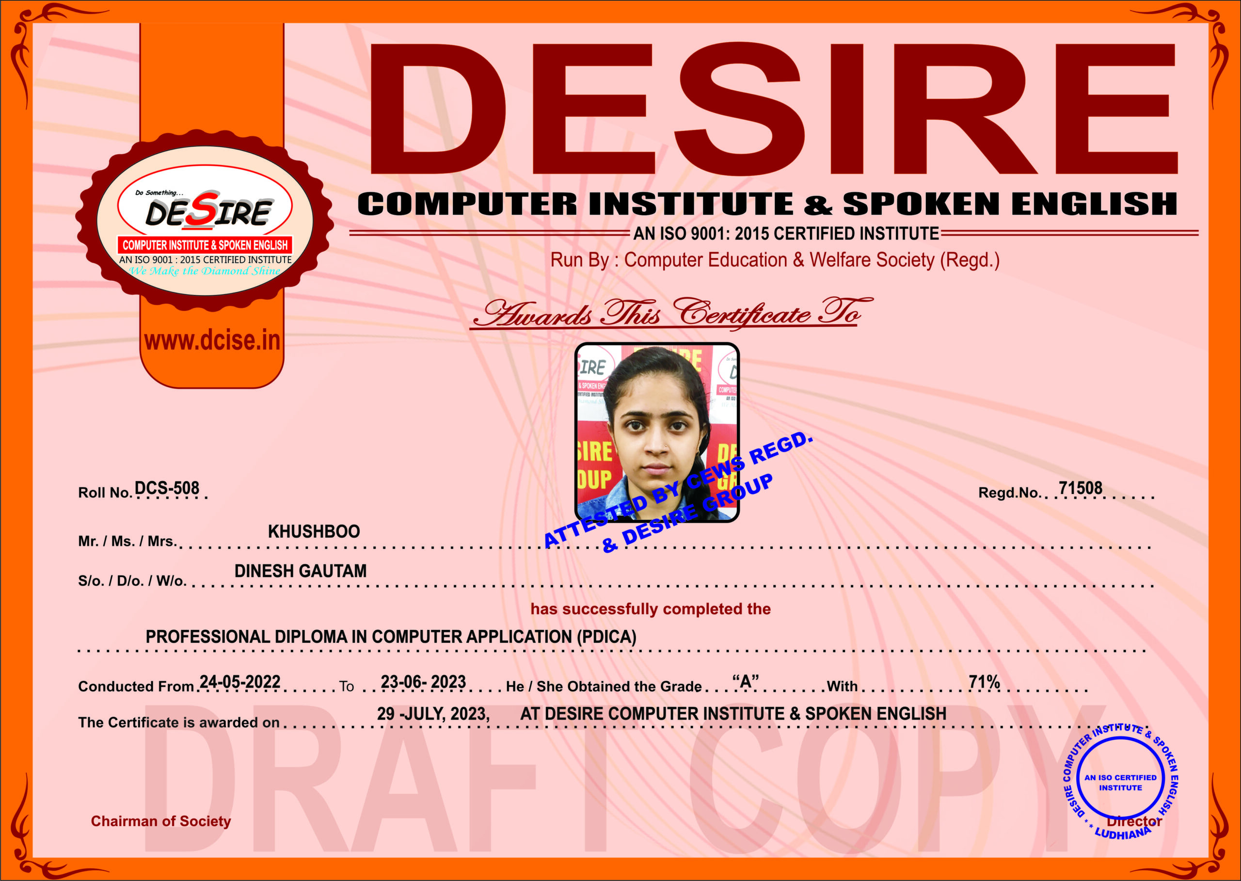 Course Name: | PROFESSIONAL DIPLOMA IN COMPUTER APPLICATION |