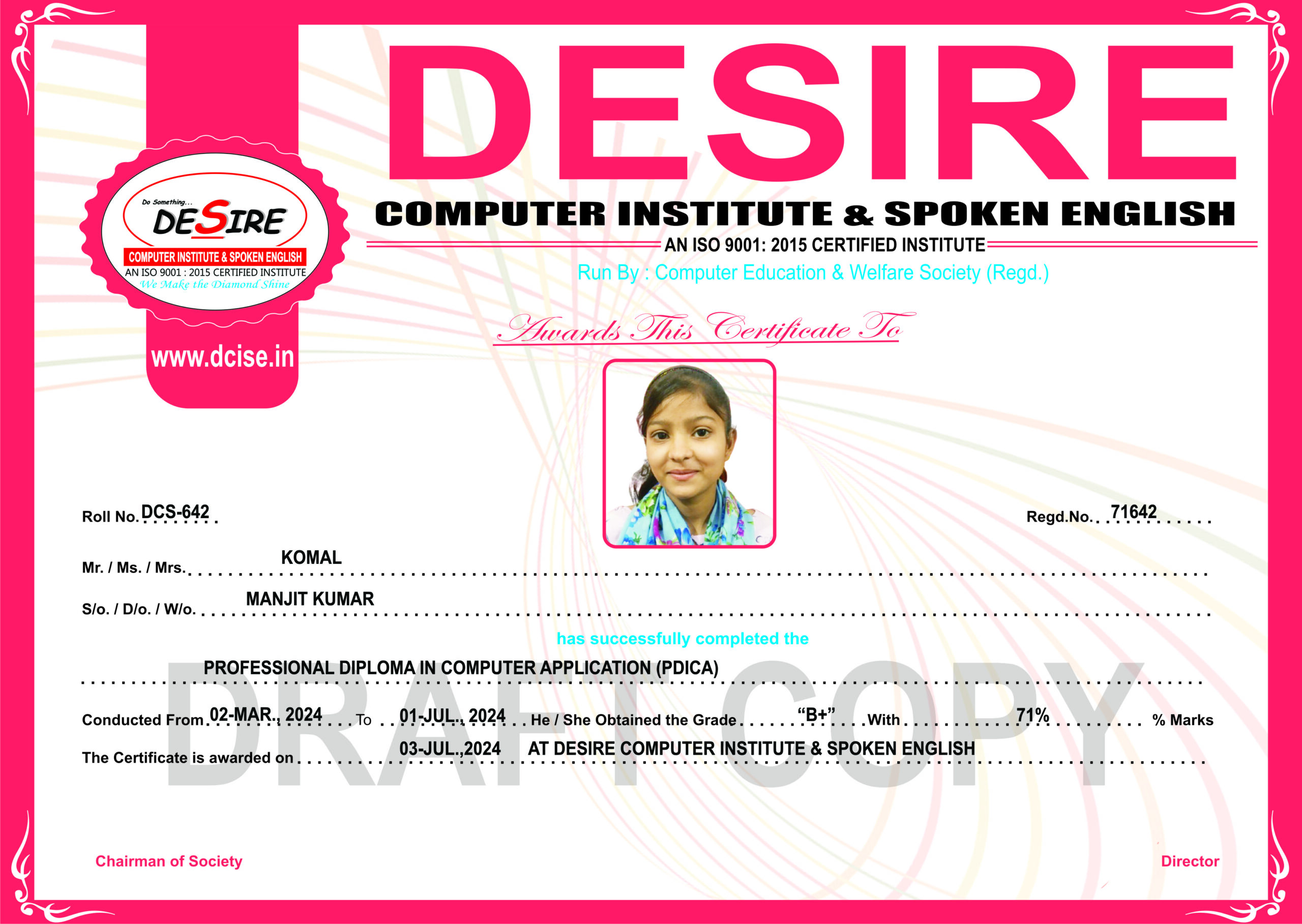 Course Name: | PROFESSIONAL DIPLOMA IN COMPUTER APPLICATION |