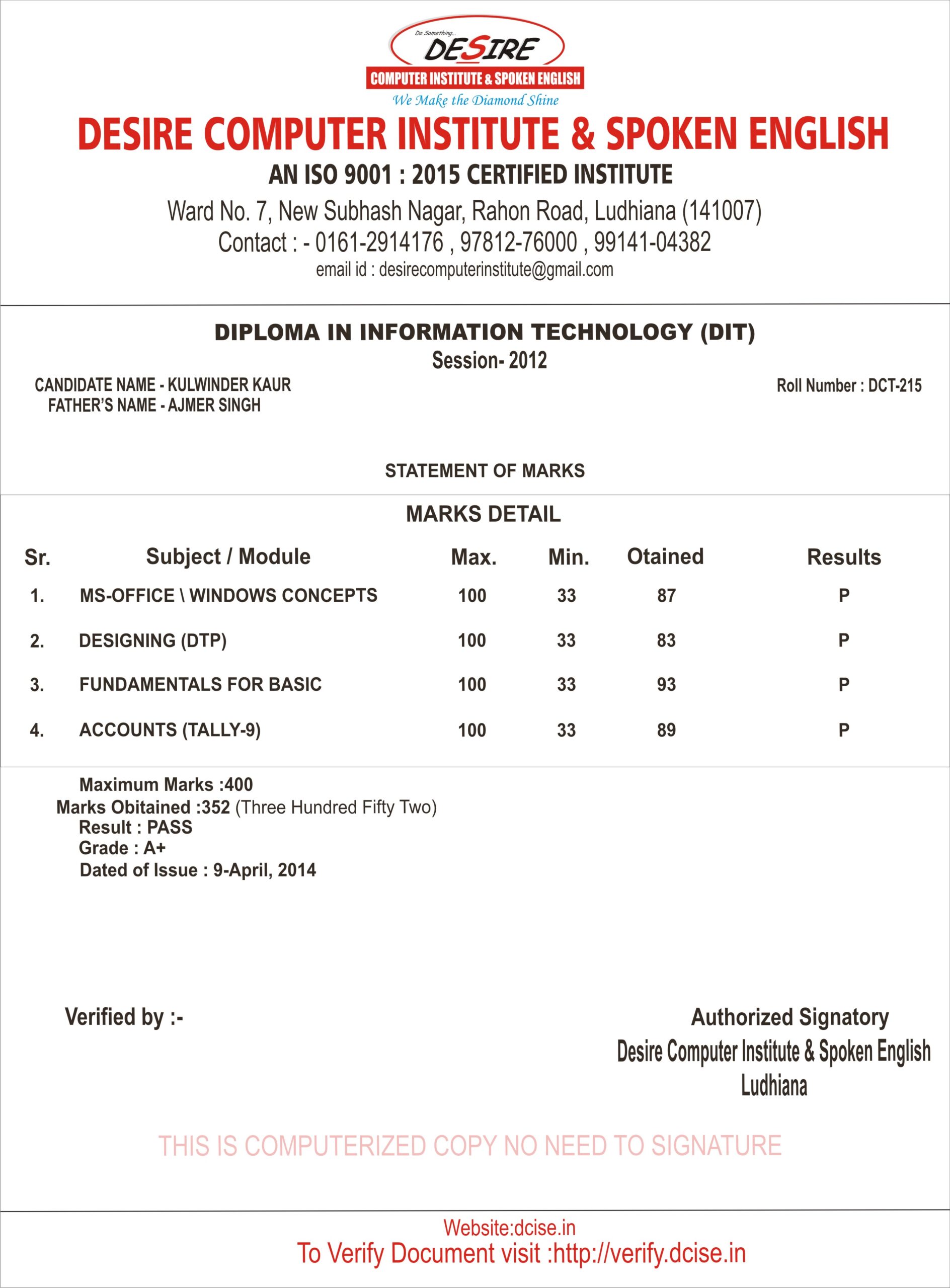 Course Name: | DIPLOMA IN INFORMATION TECHNOLOGY (DIT) |