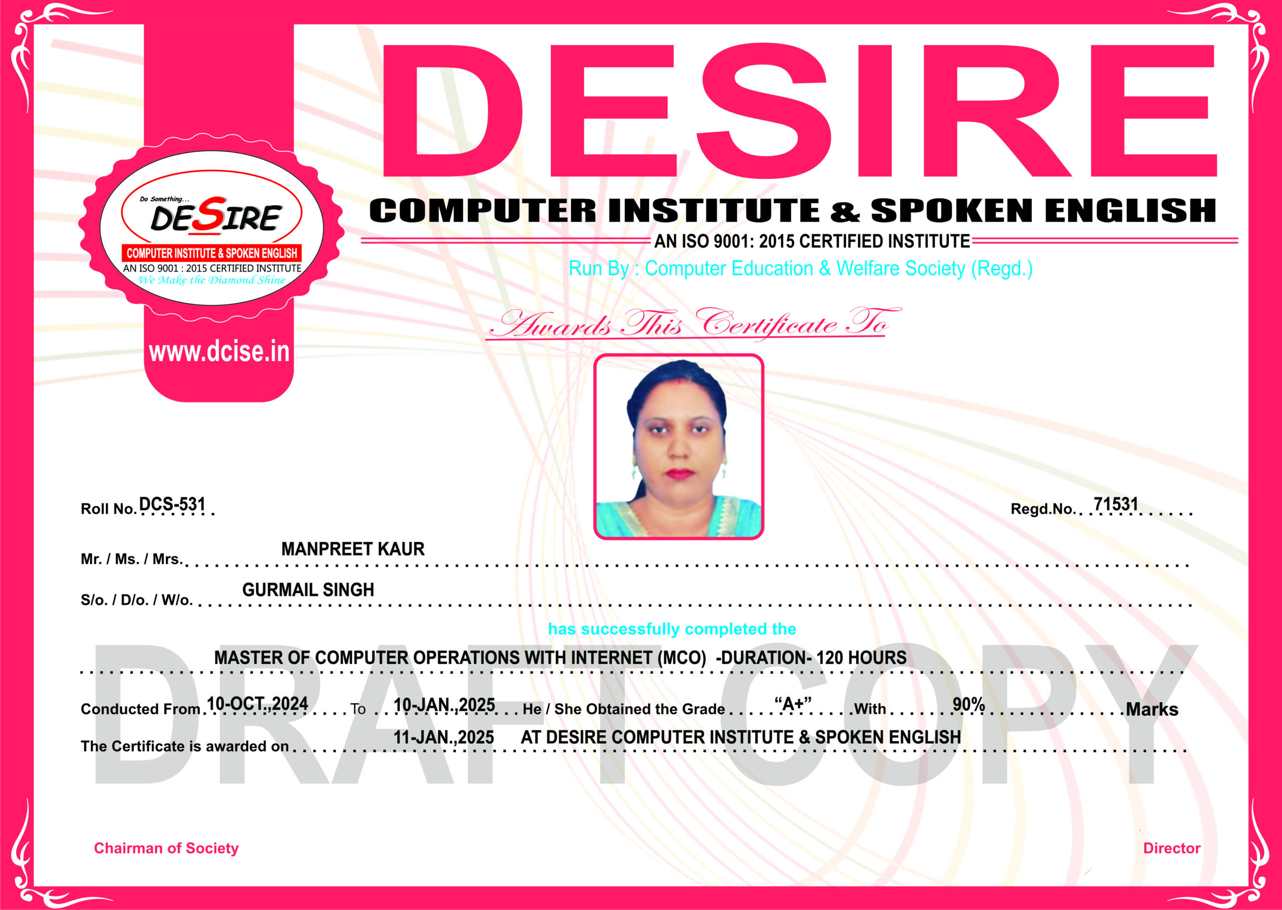 Centre Name: | Desire Computer Institute & Spoken English |