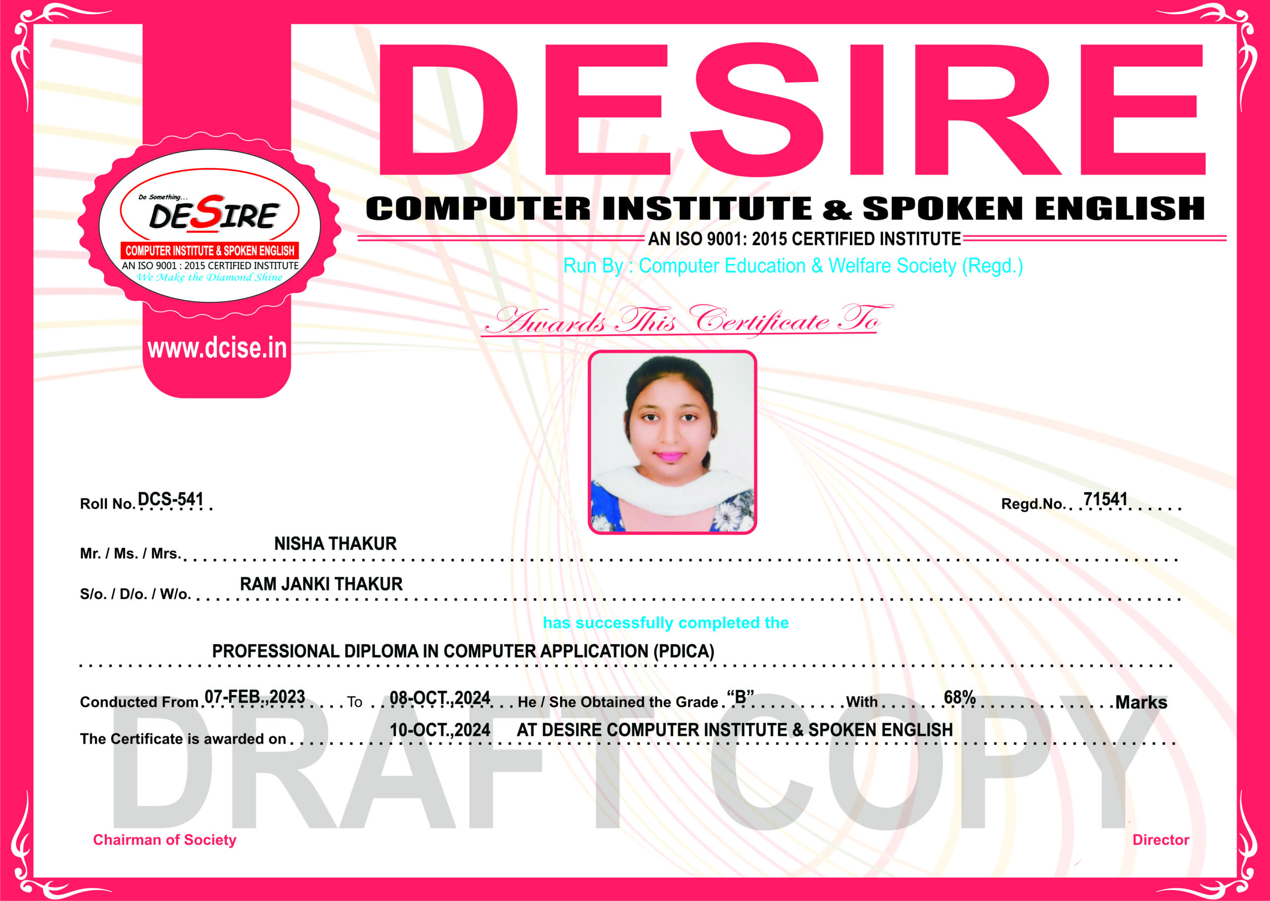 Course Name: | PROFESSIONAL DIPLOMA IN COMPUTER APPLICATION (PDICA) |