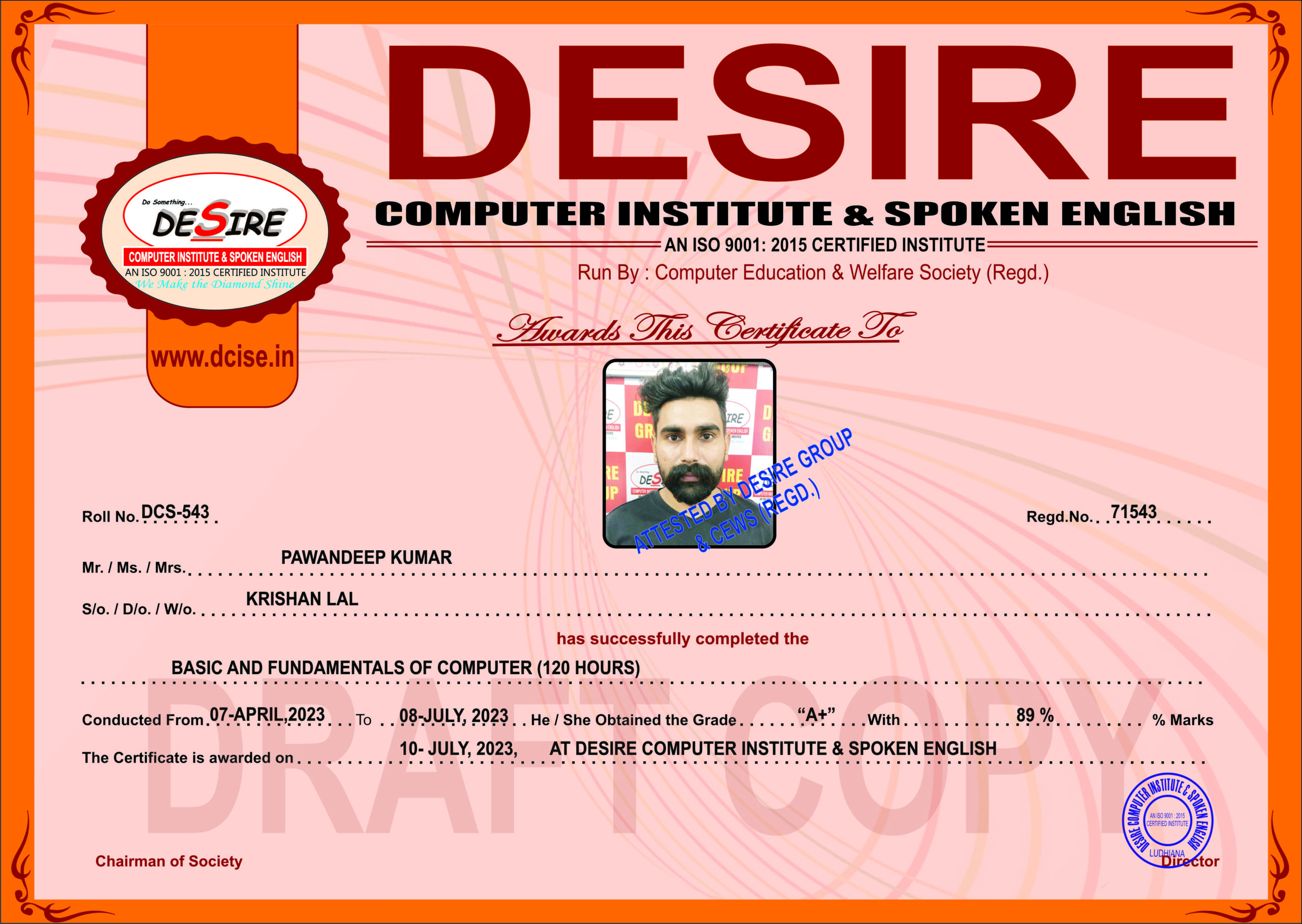Course Name: | BASIC AND FUNDAMENTAL OF COMPUTER (120 HOURS) |