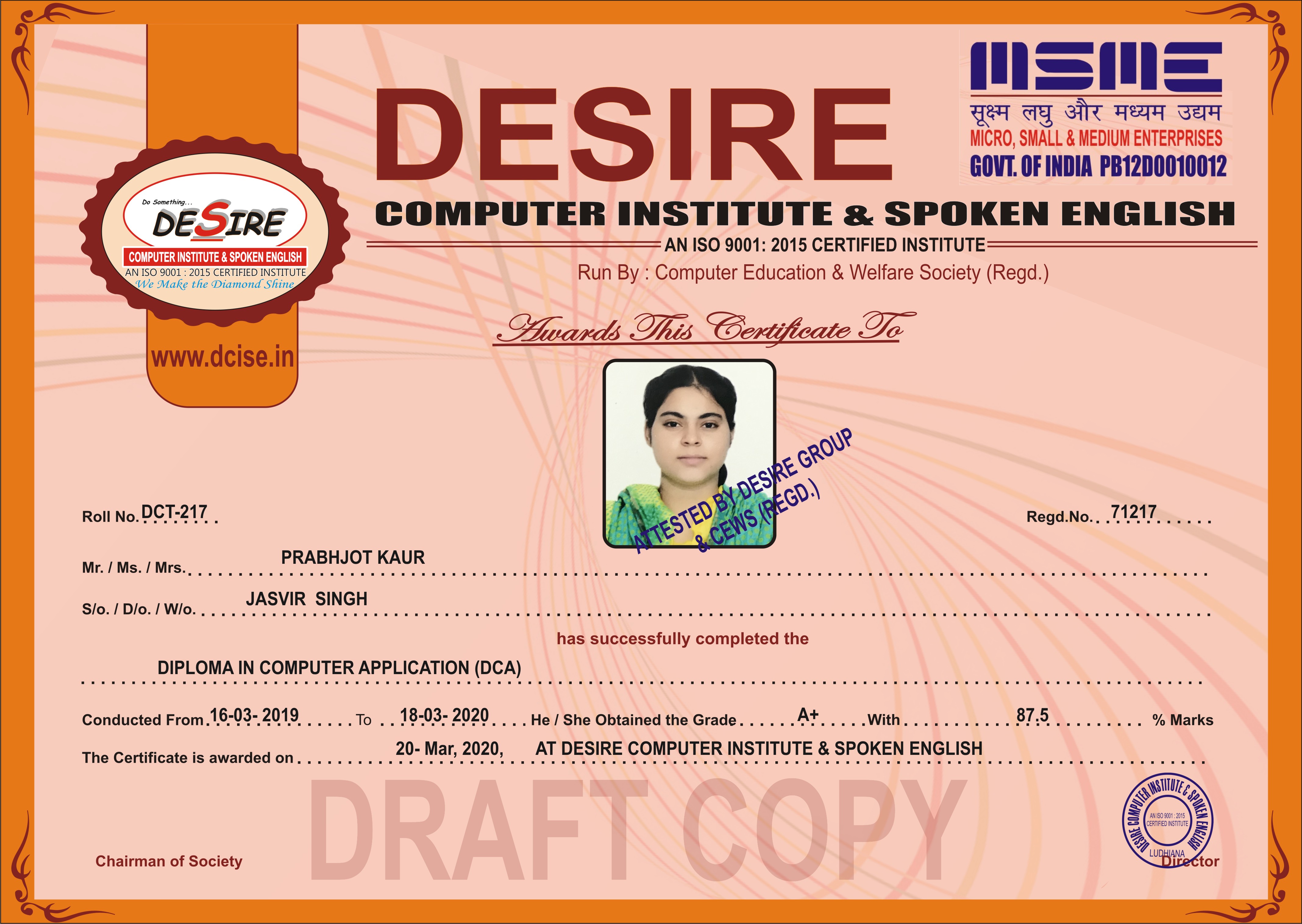 Course Name: | DIPLOMA IN COMPUTER APPLICATION (DCA) |