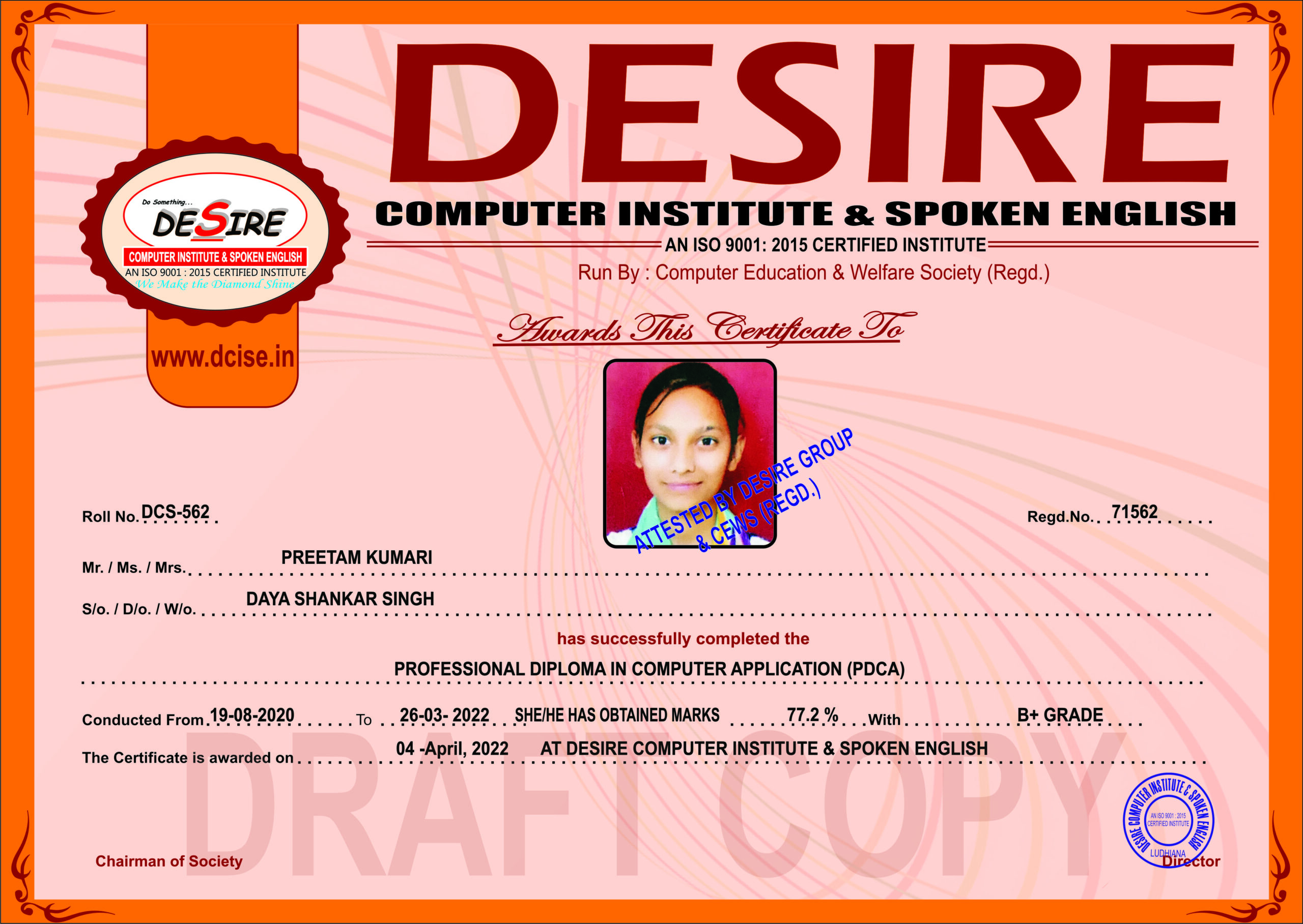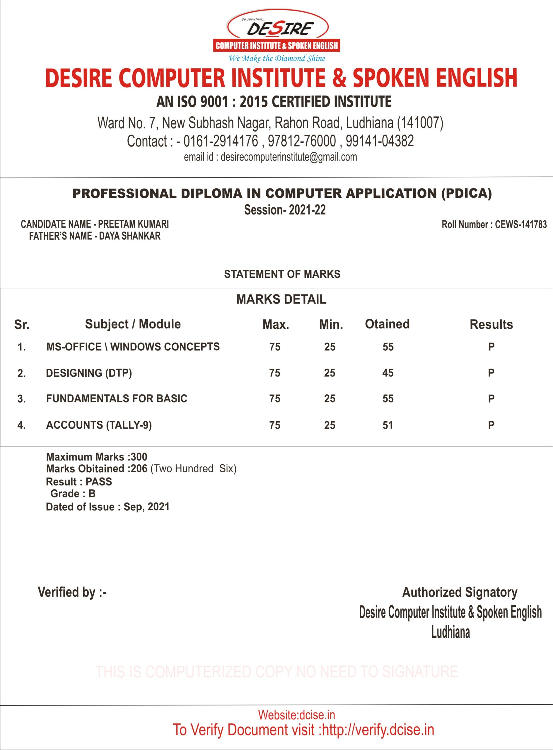 Course Name: | PROFESSIONAL DIPLOMA IN COMPUTER APPLICATION |