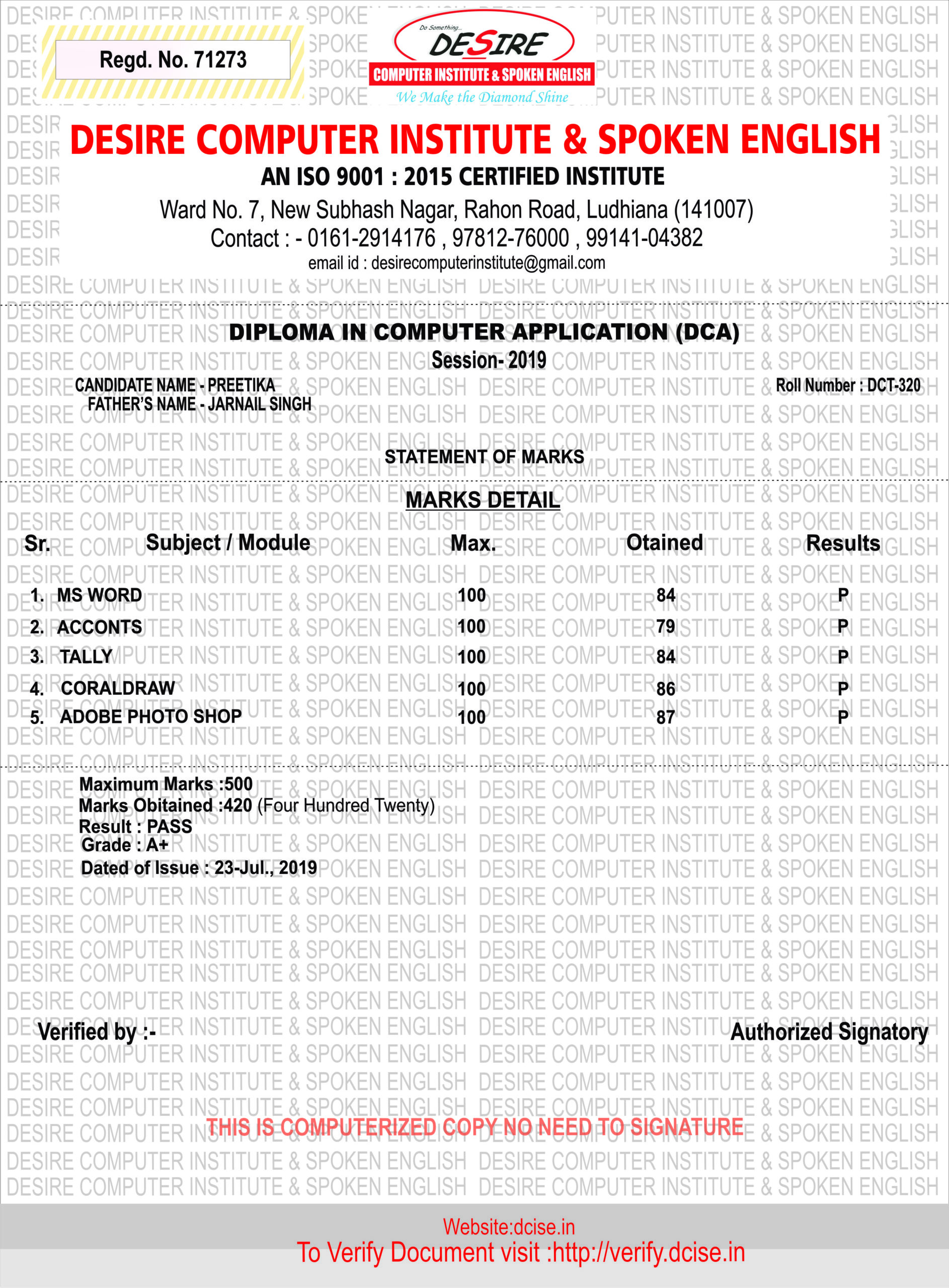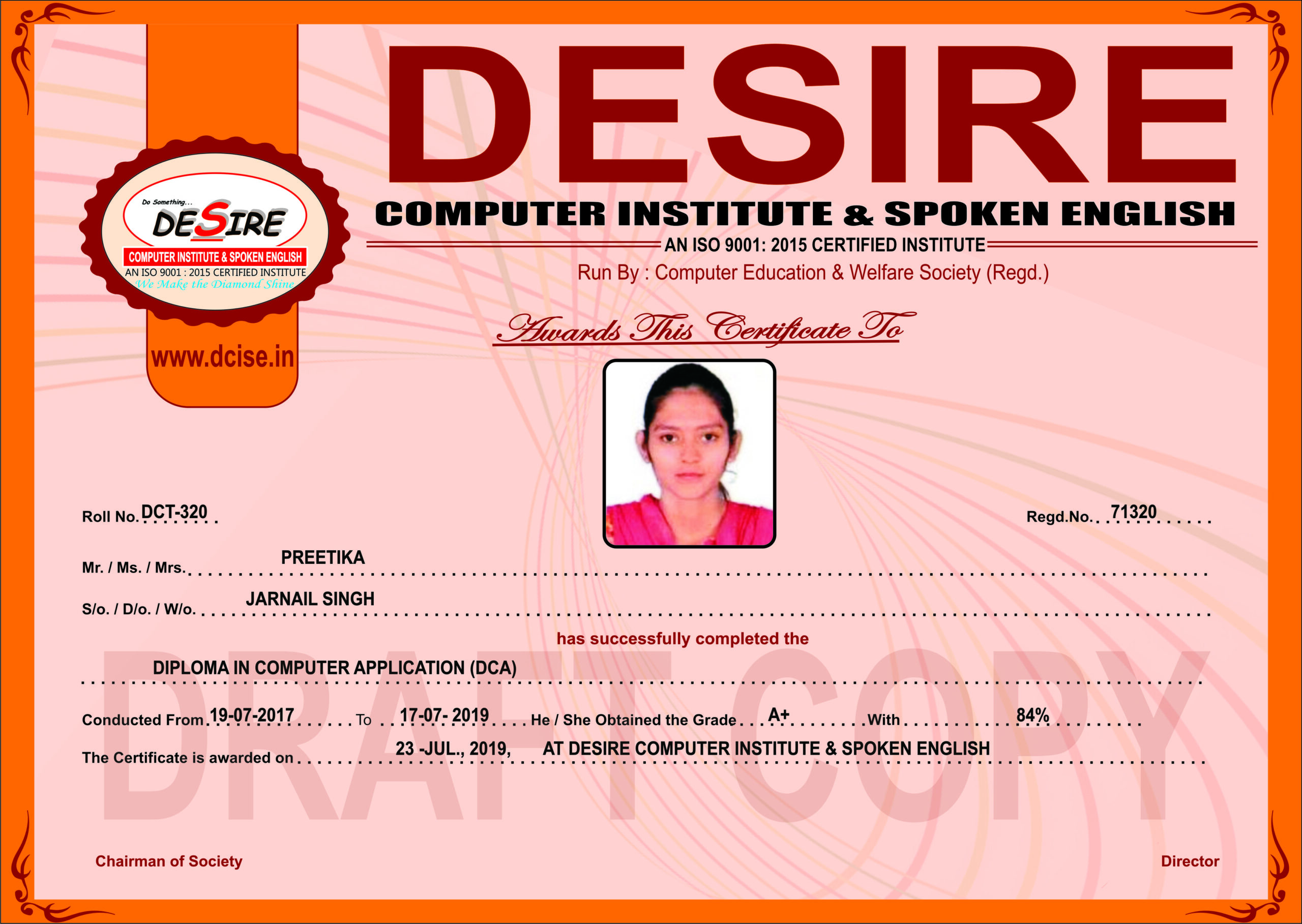 Course Name: | DIPLOMA IN COMPUTER APPLICATION (DCA) |