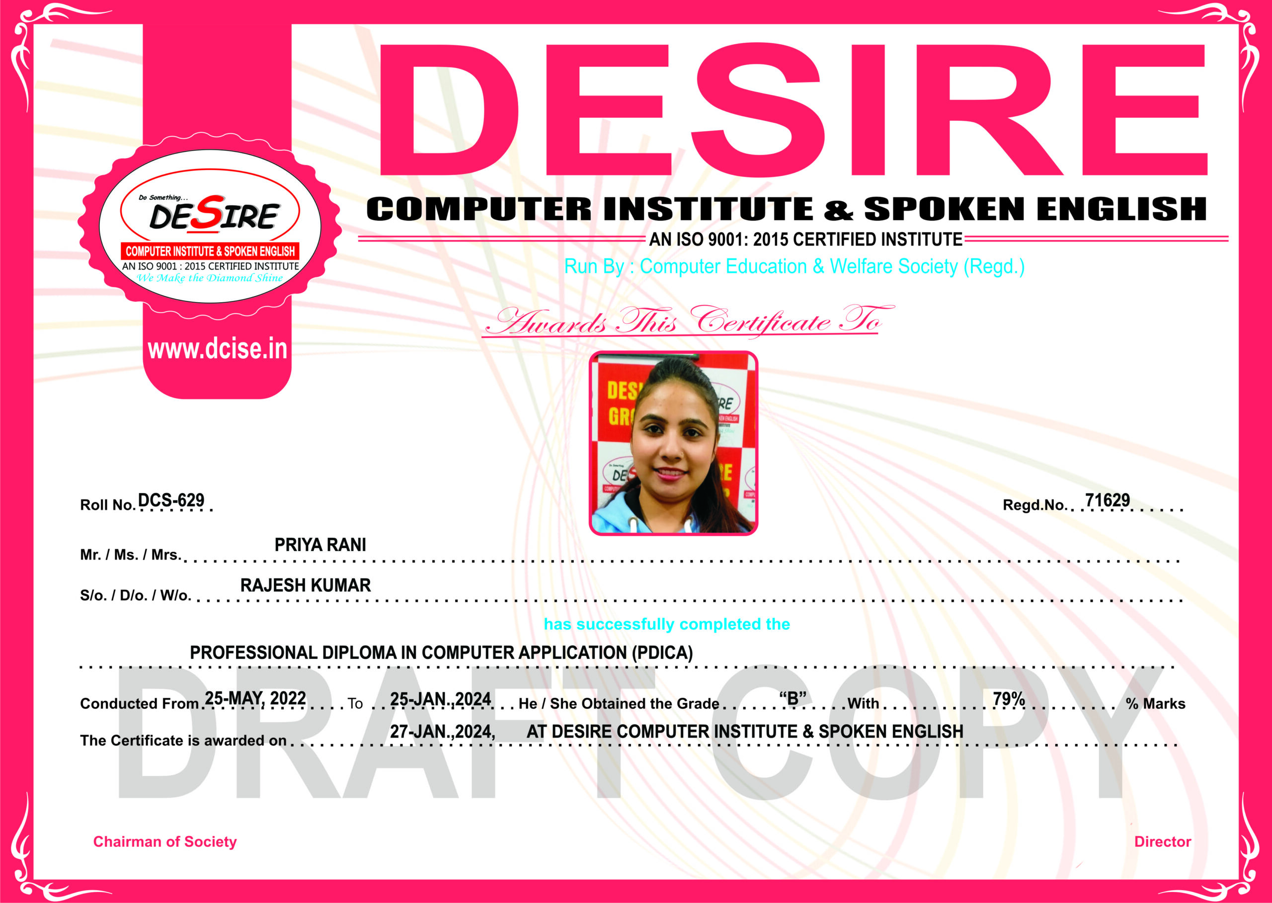 Course Name: | PROFESSIONAL DIPLOMA IN COMPUTER APPLICATION |