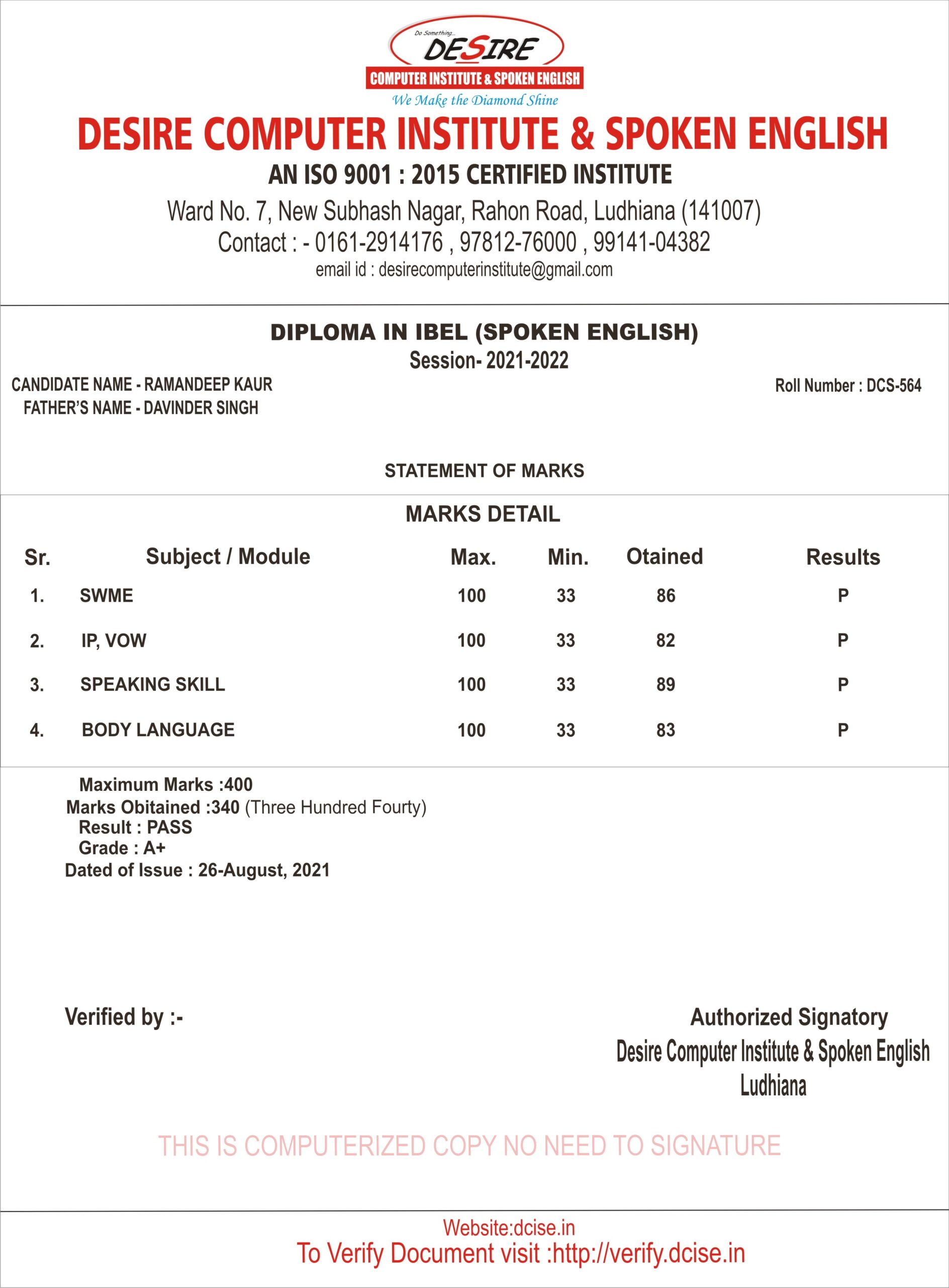 Centre Name: | Desire Computer Institute & Spoken English |