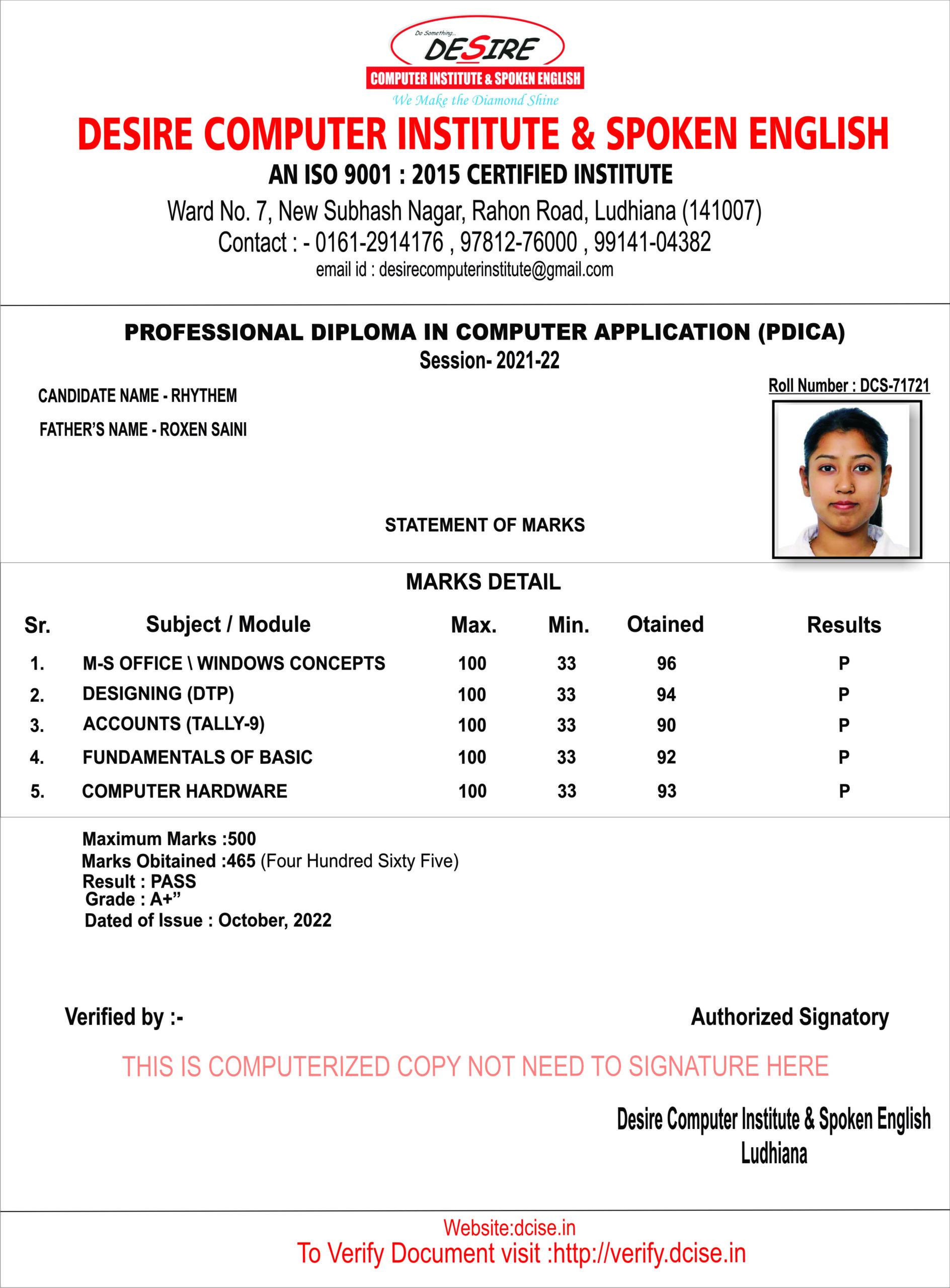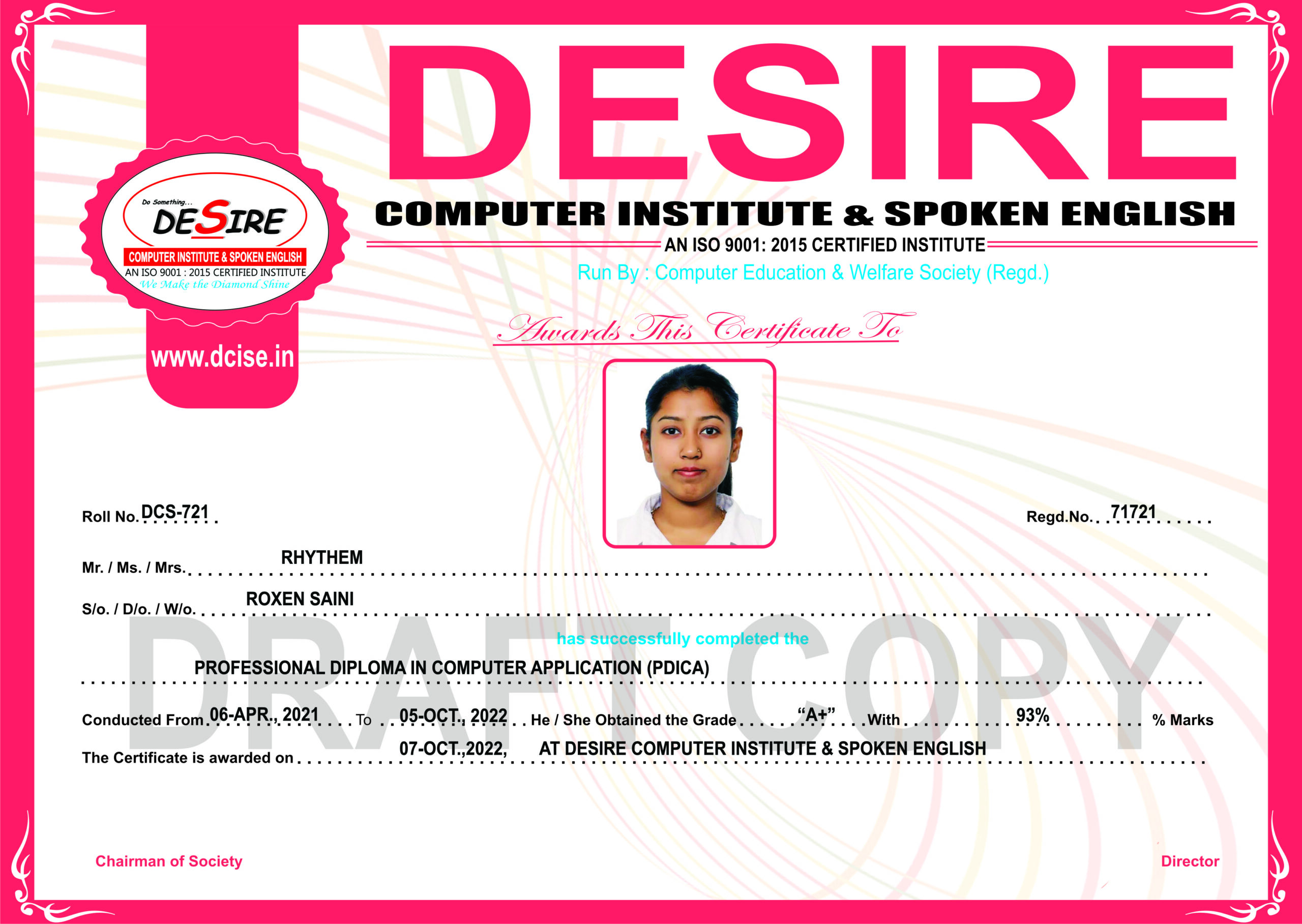 Course Name: | PROFESSIONAL DIPLOMA IN COMPUTER APPLICATION (PDICA) |