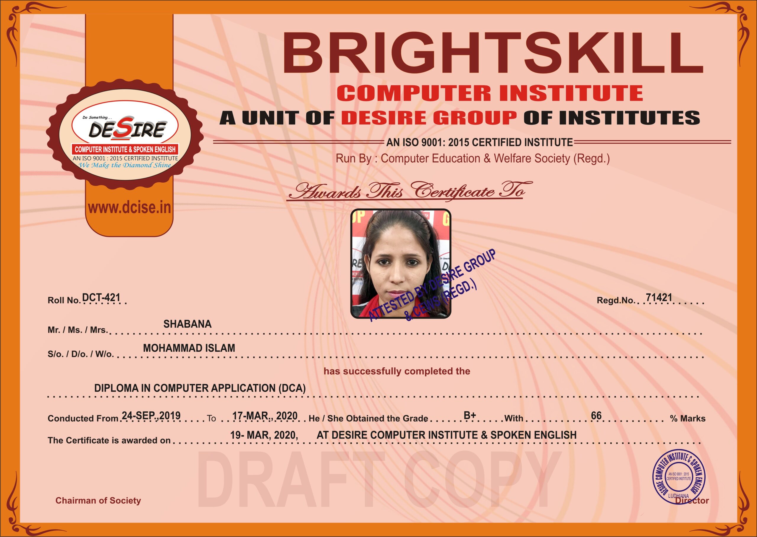 Course Name: | DIPLOMA IN COMPUTER APPLICATION (DCA) |