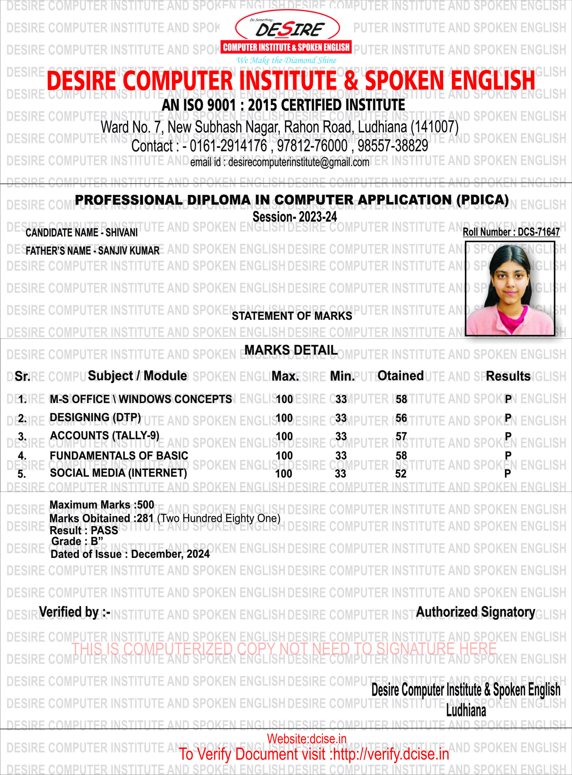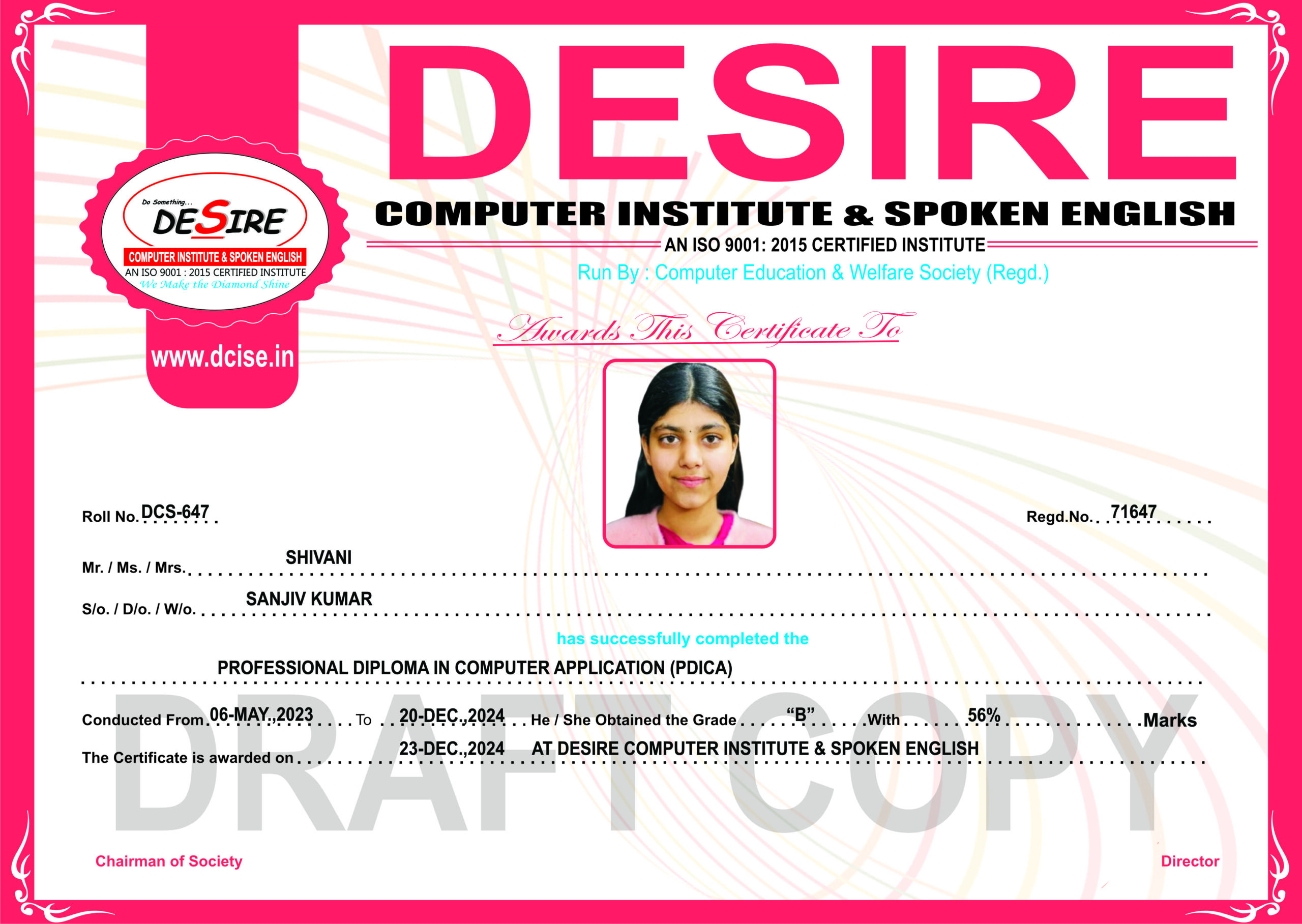 Course Name: | PROFESSIONAL DIPLOMA IN COMPUTER APPLICATION (PDICA) |