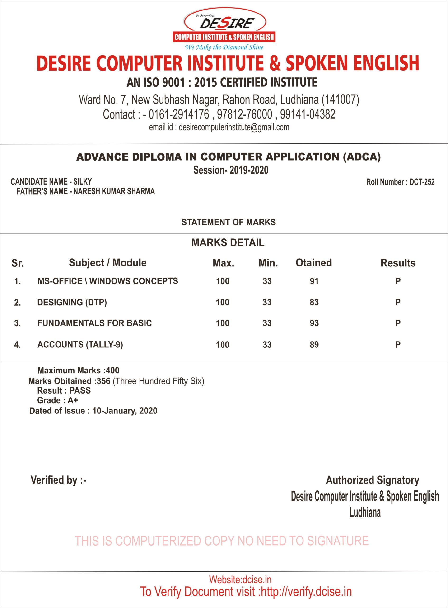 Course Name: | ADVANCE DIPLOMA IN COMPUTER APPLICATION |