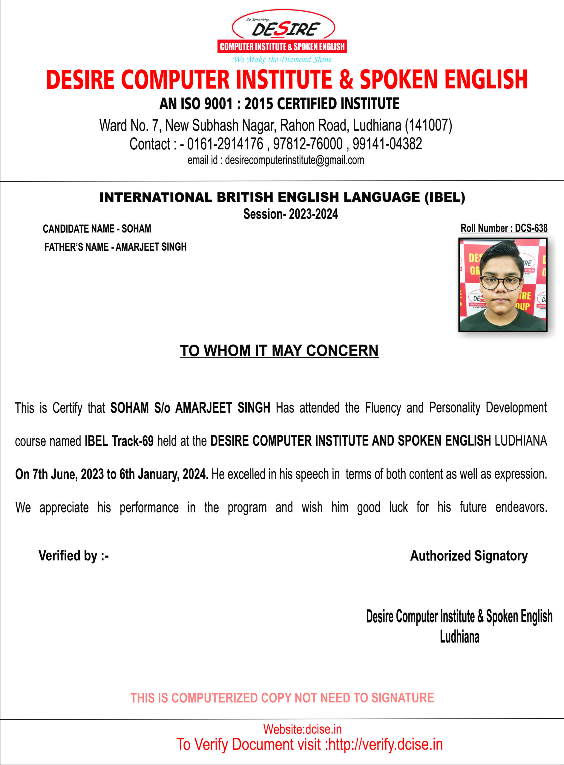 Course Name: | IBEL (TRACK-69) SPOKEN ENGLISH |