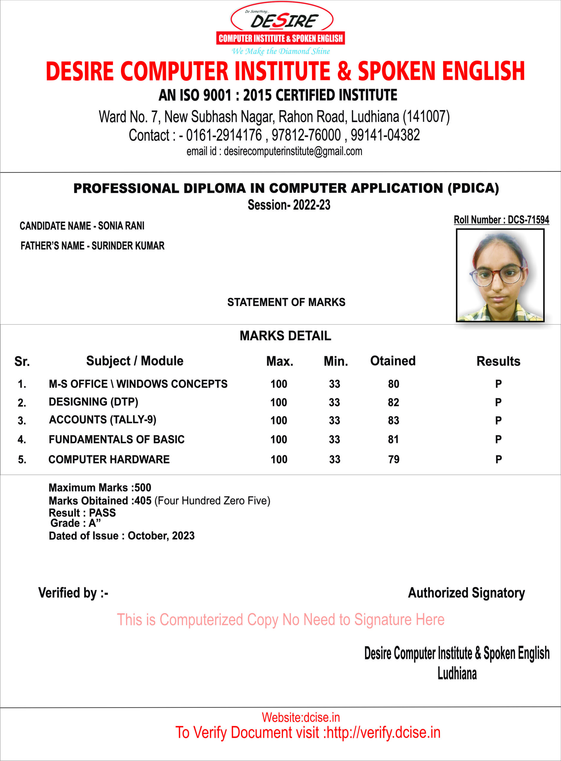 Course Name: | PROFESSIONAL DIPLOMA IN COMPUTER APPLICATION |