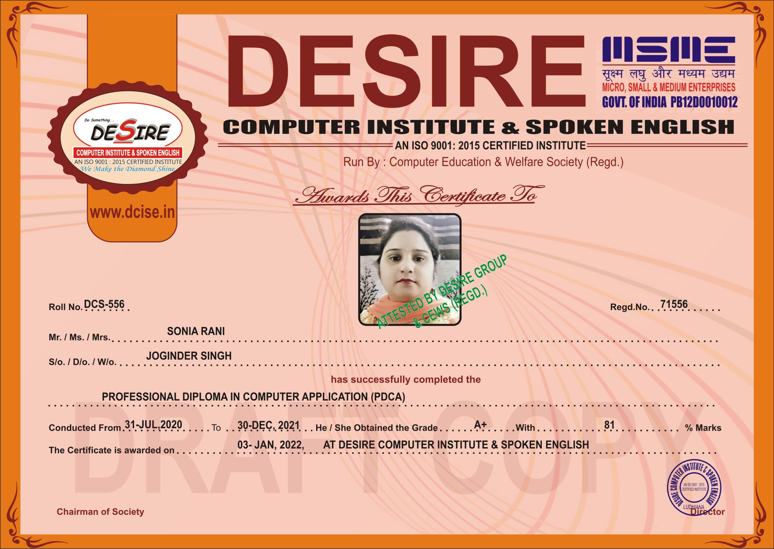 Course Name: | PROFESSIONAL DIPLOMA IN COMPUTER APPLICATION |