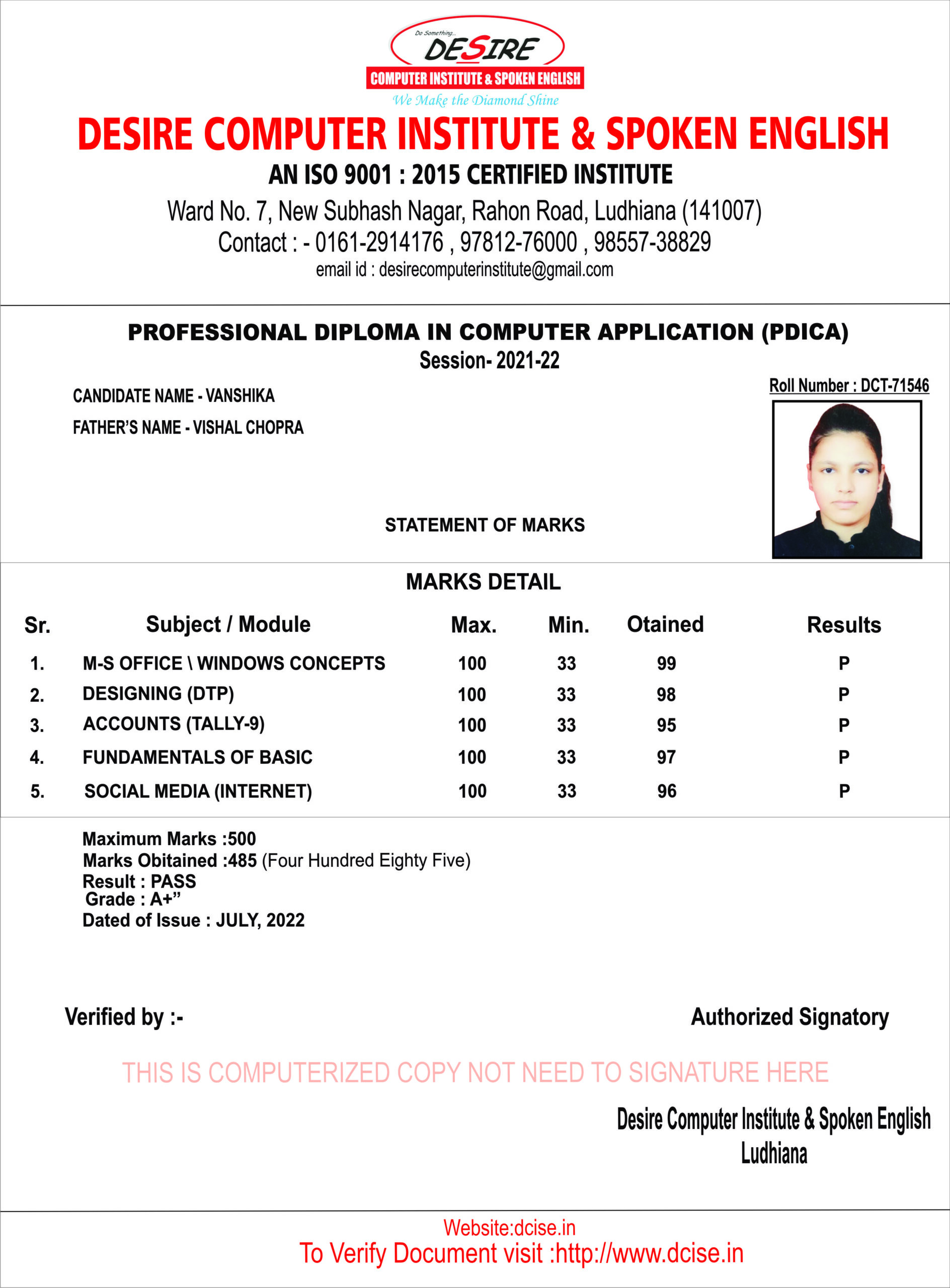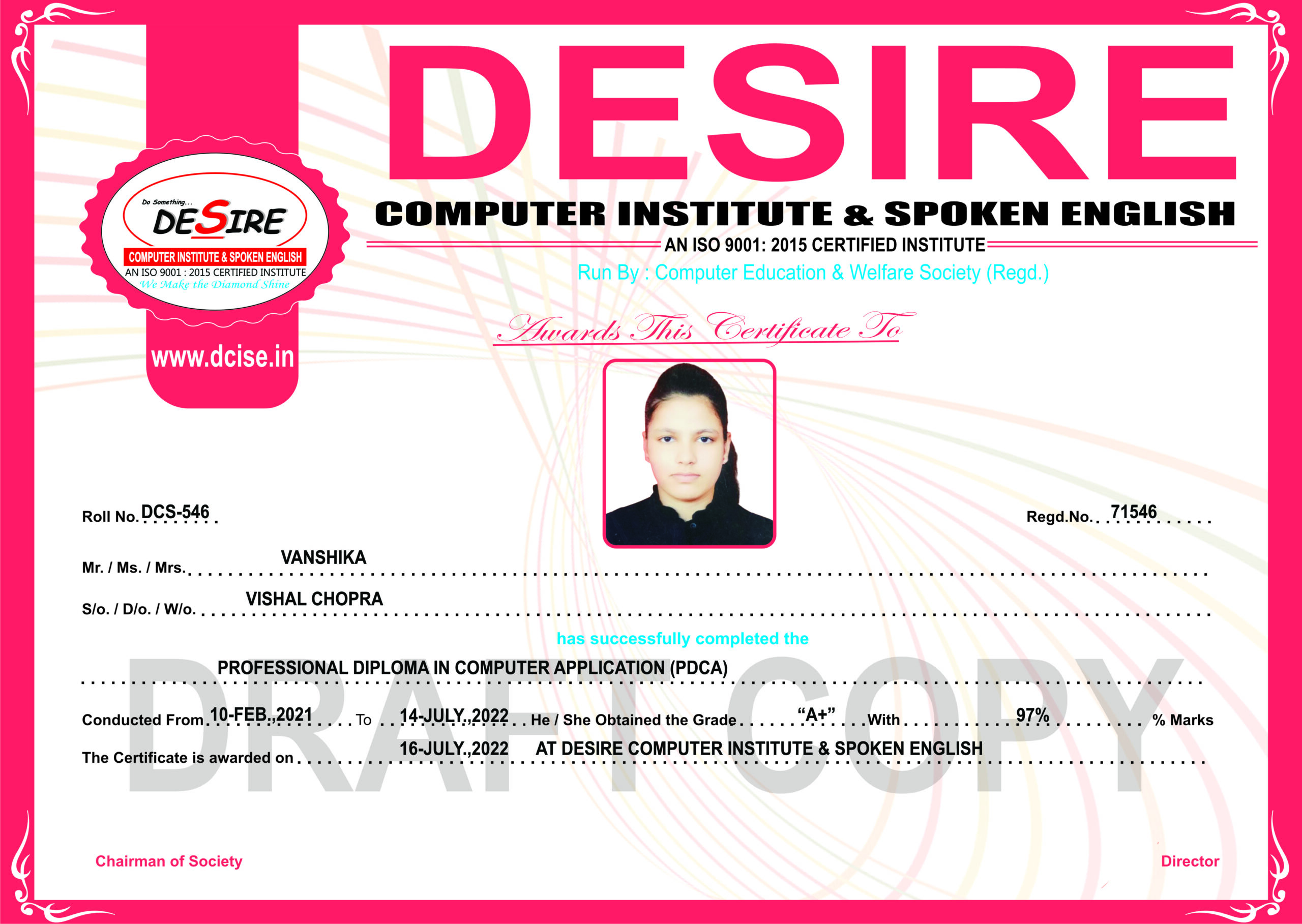 Course Name: | PROFESSIONAL DIPLOMA IN COMPUTER APPLICATION |