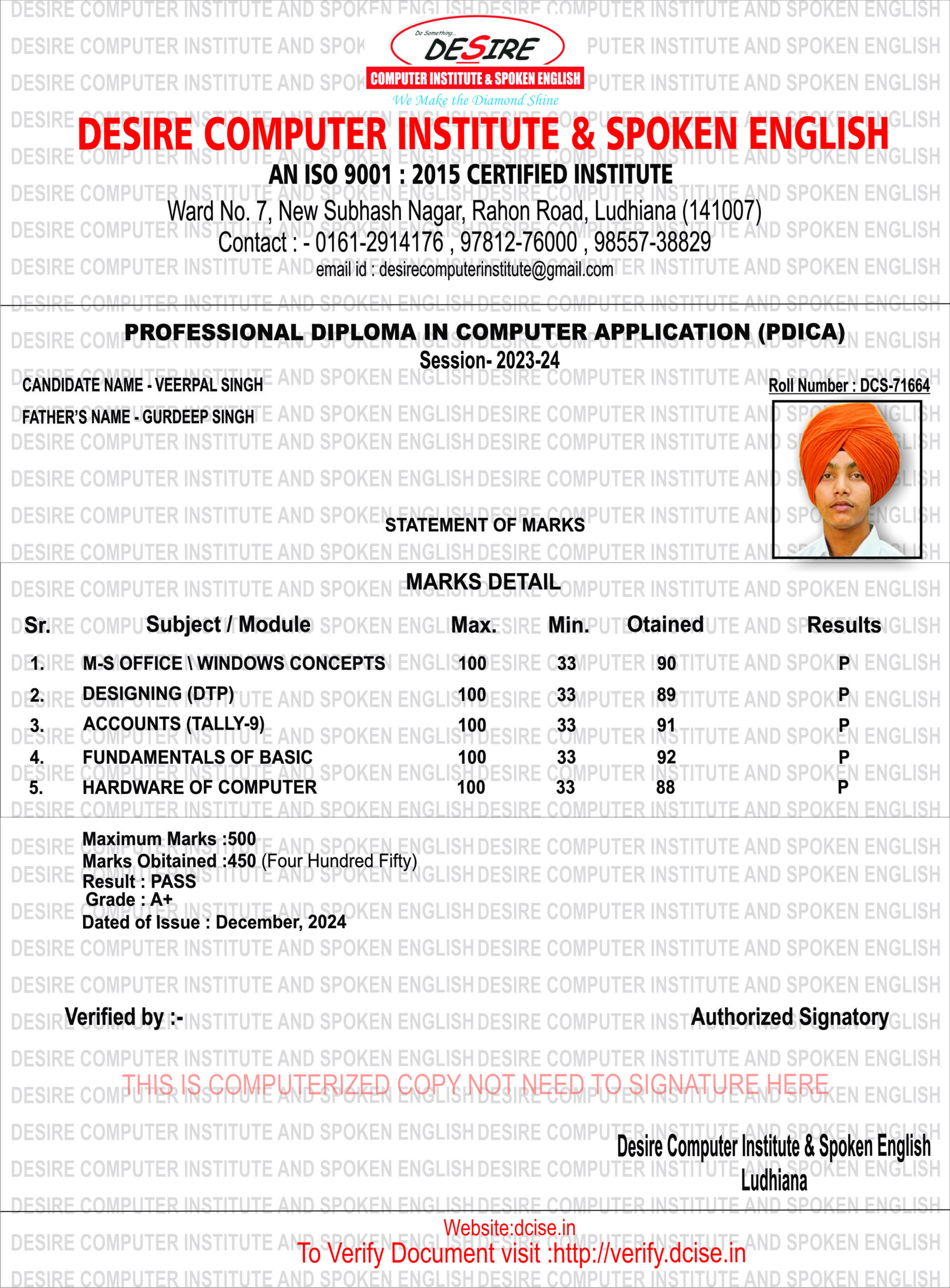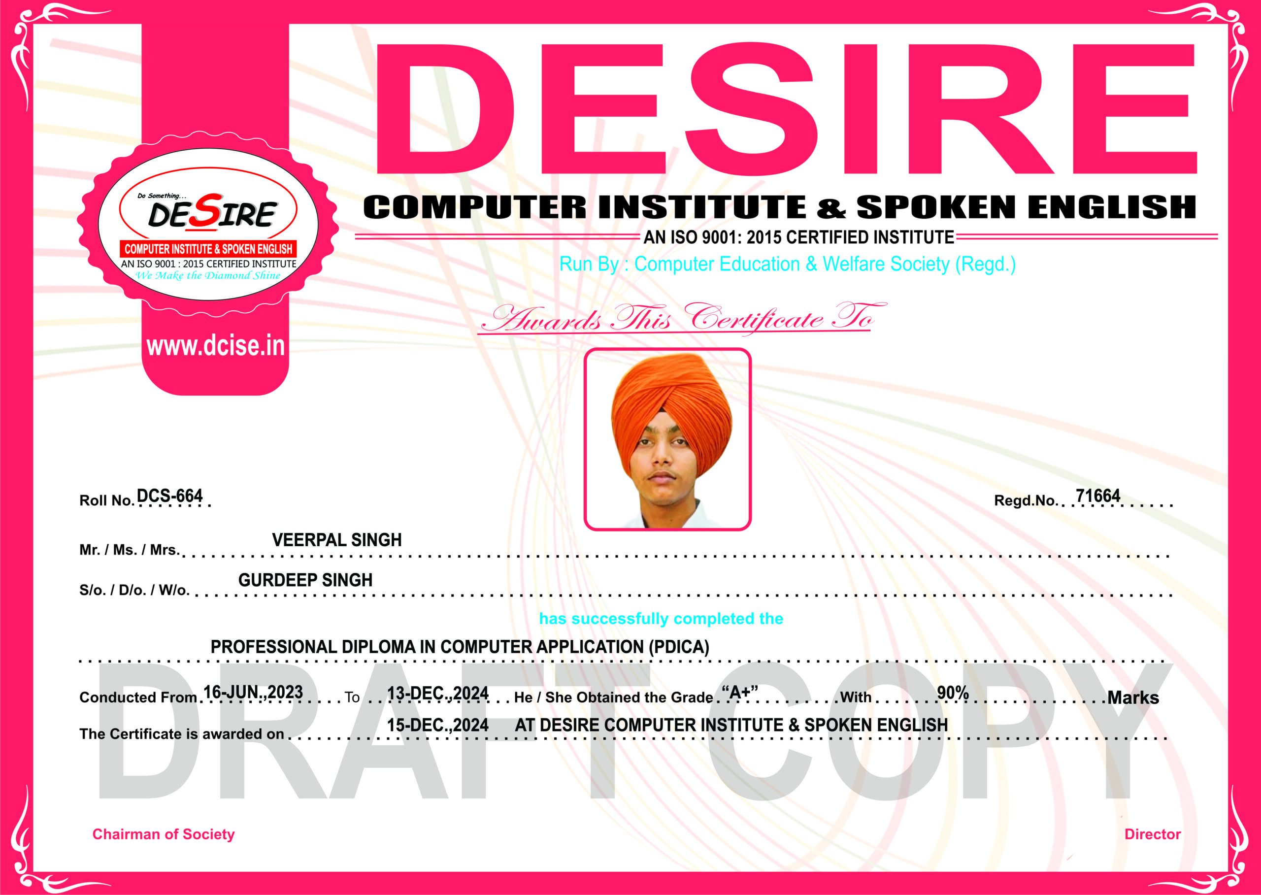 Course Name: | PROFESSIONAL DIPLOMA IN COMPUTER APPLICATION (PDICA) |