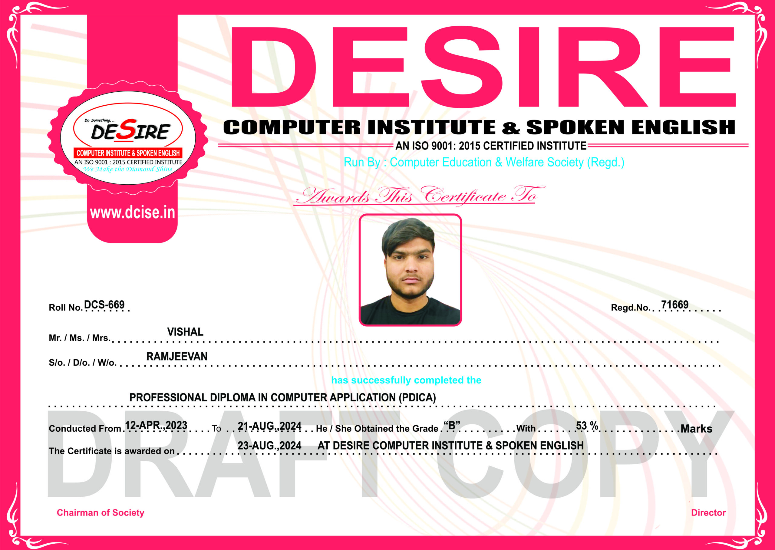 Course Name: | PROFESSIONAL DIPLOMA IN COMPUTER APPLICATION (PDICA) |
